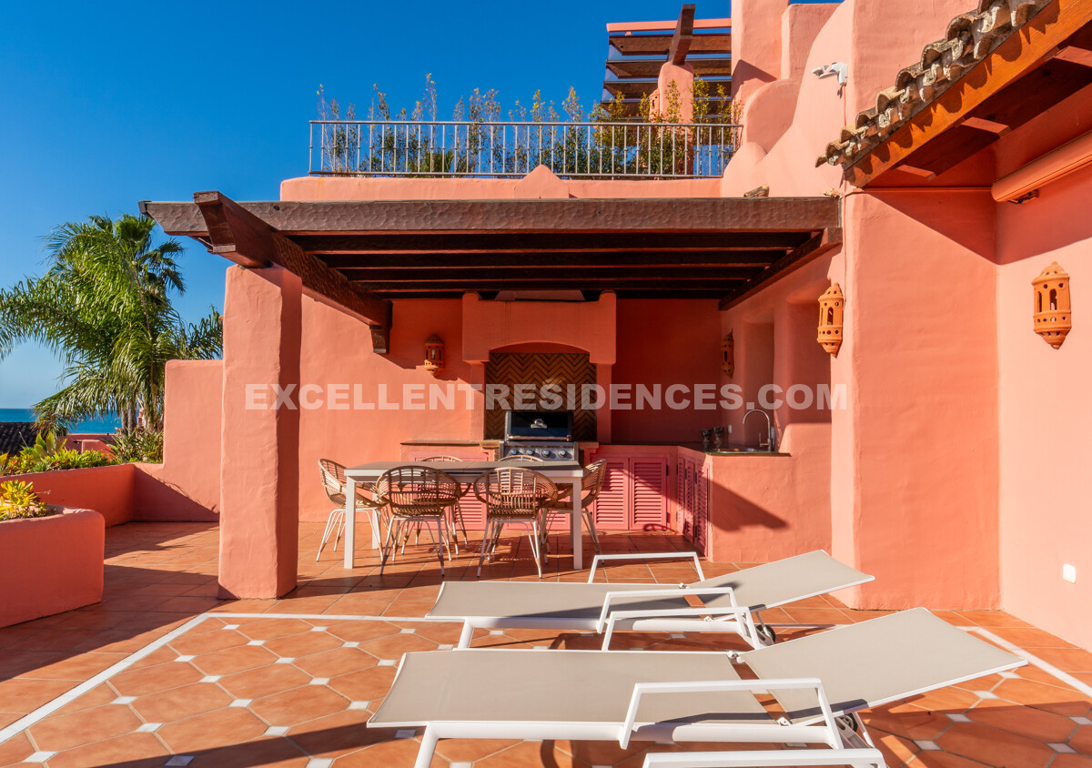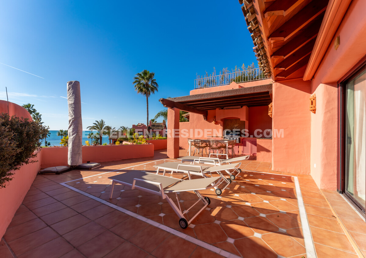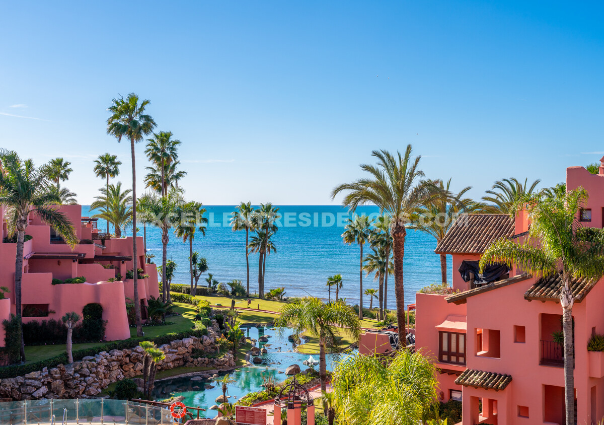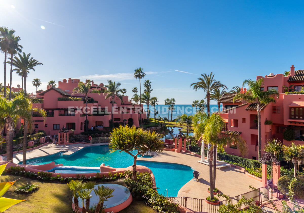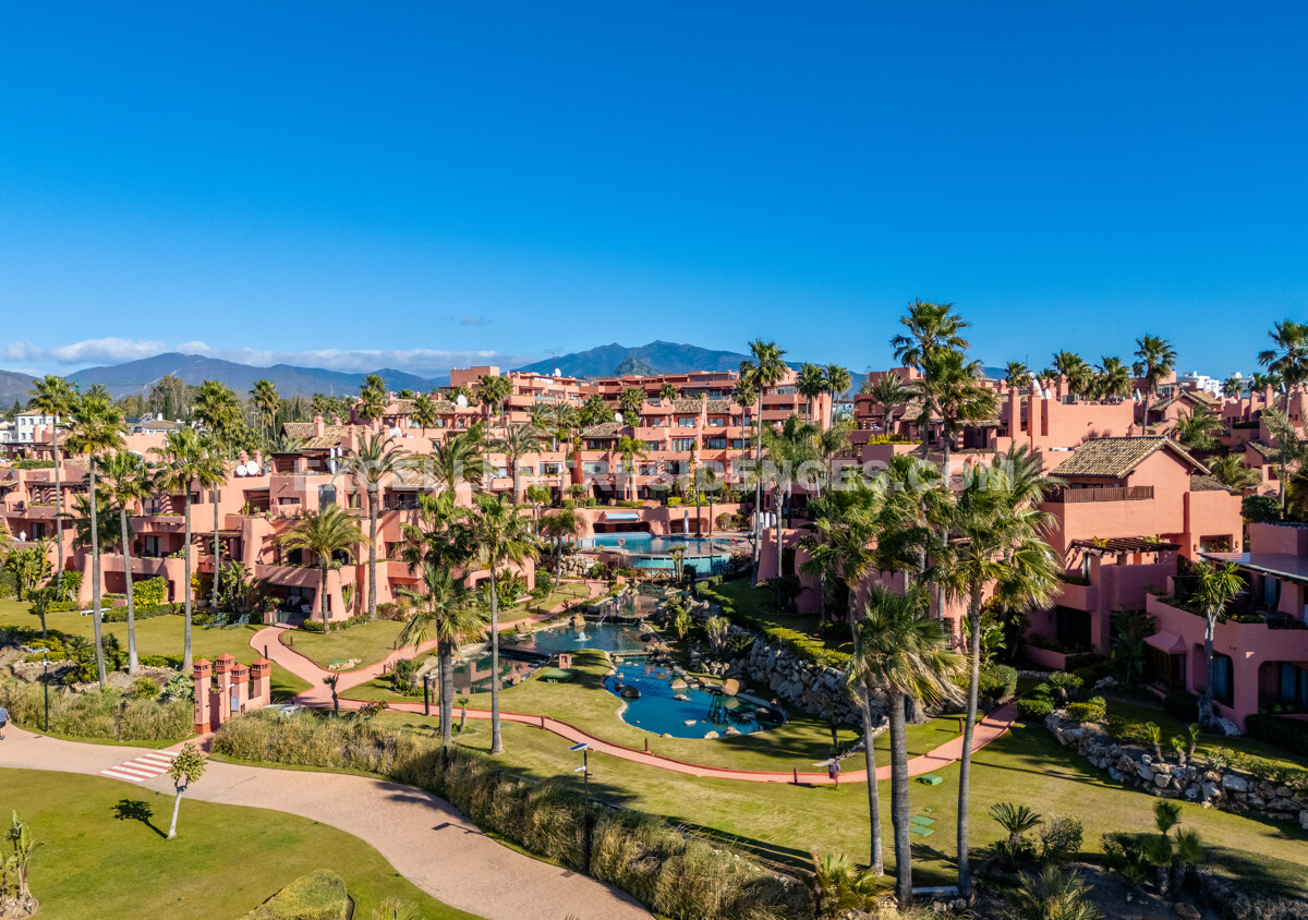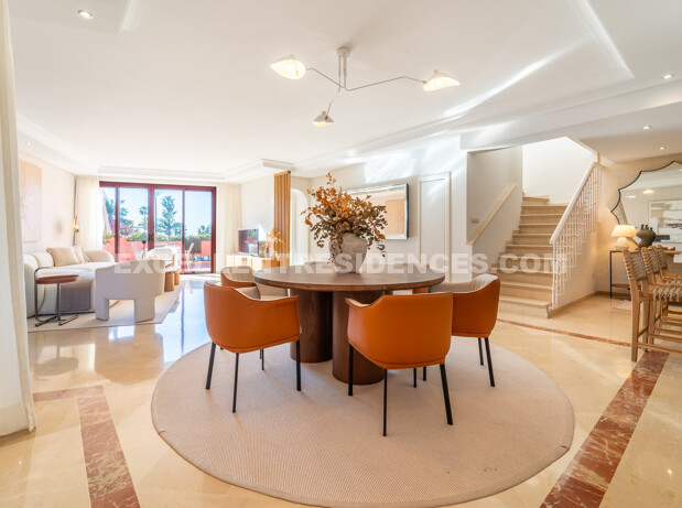 Set on the frontline of the beach in the prestigious Cabo Bermejo community, this exclusive duplex penthouse enjoys sweeping Mediterranean views that stretch to Gibraltar. Positioned in the heart of Estepona’s New Golden Mile, it offers an established coastal setting with direct access to the promenade and sand.