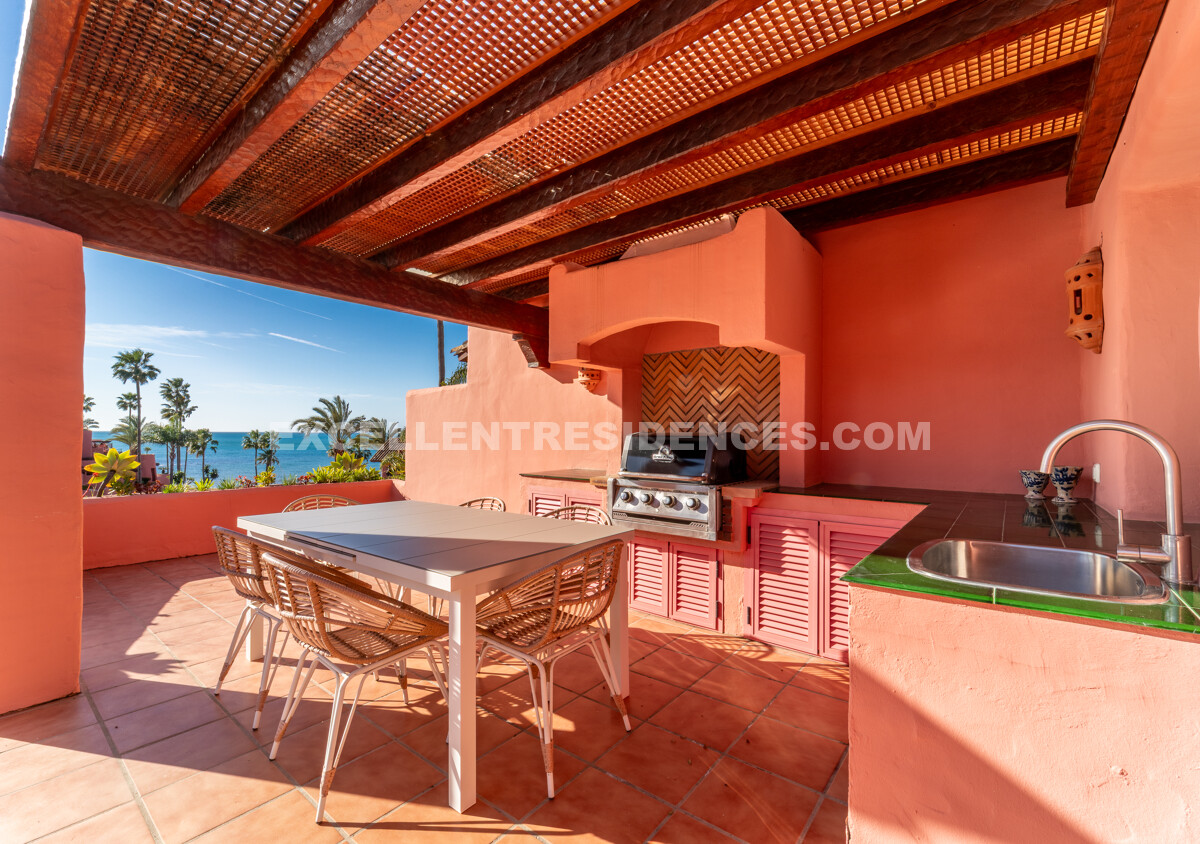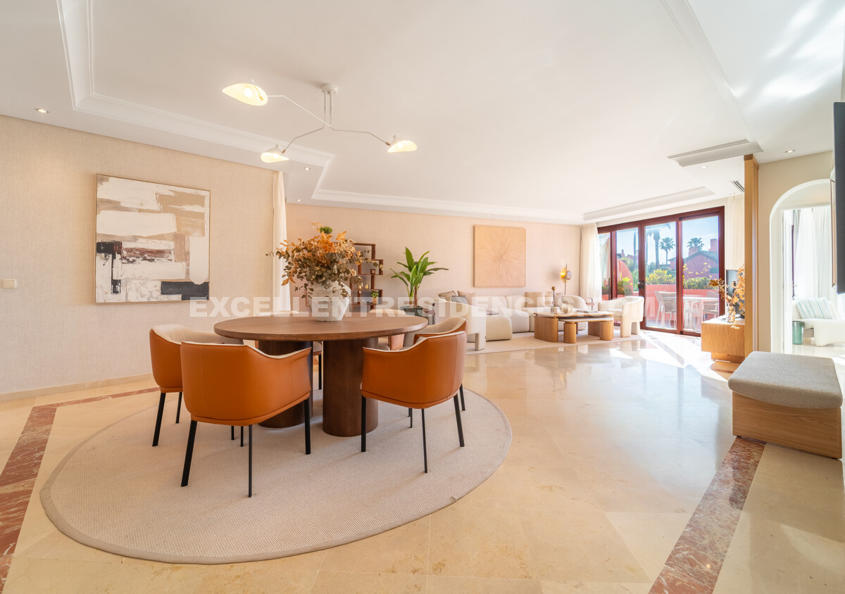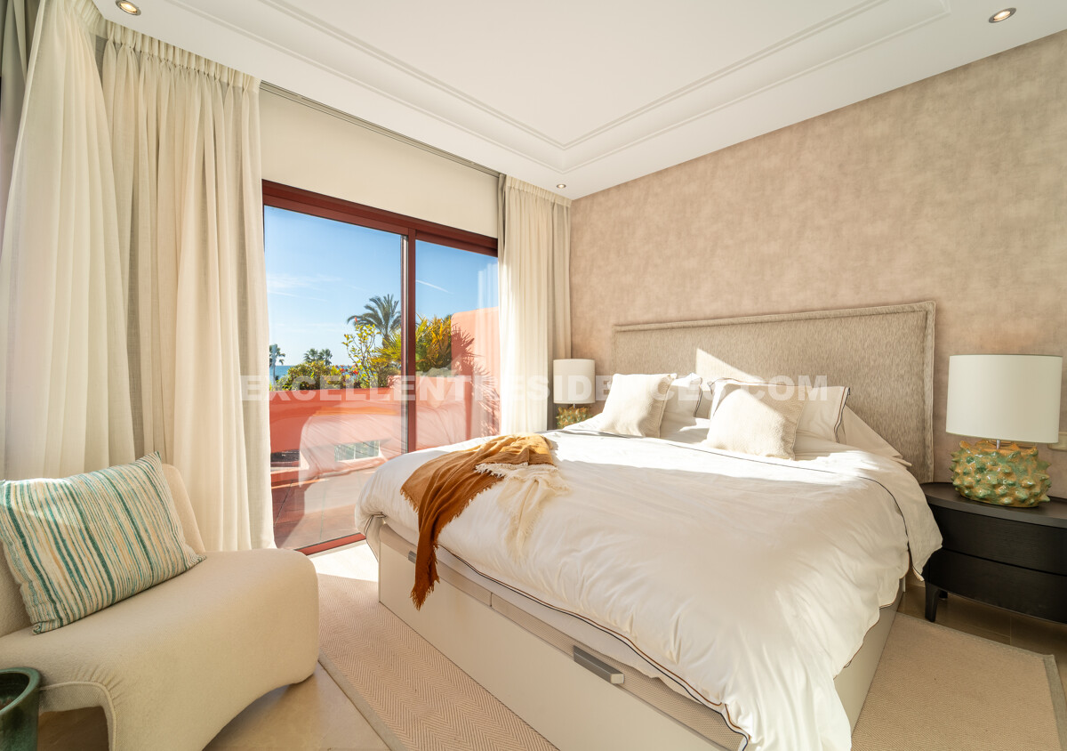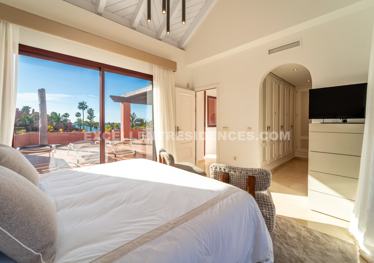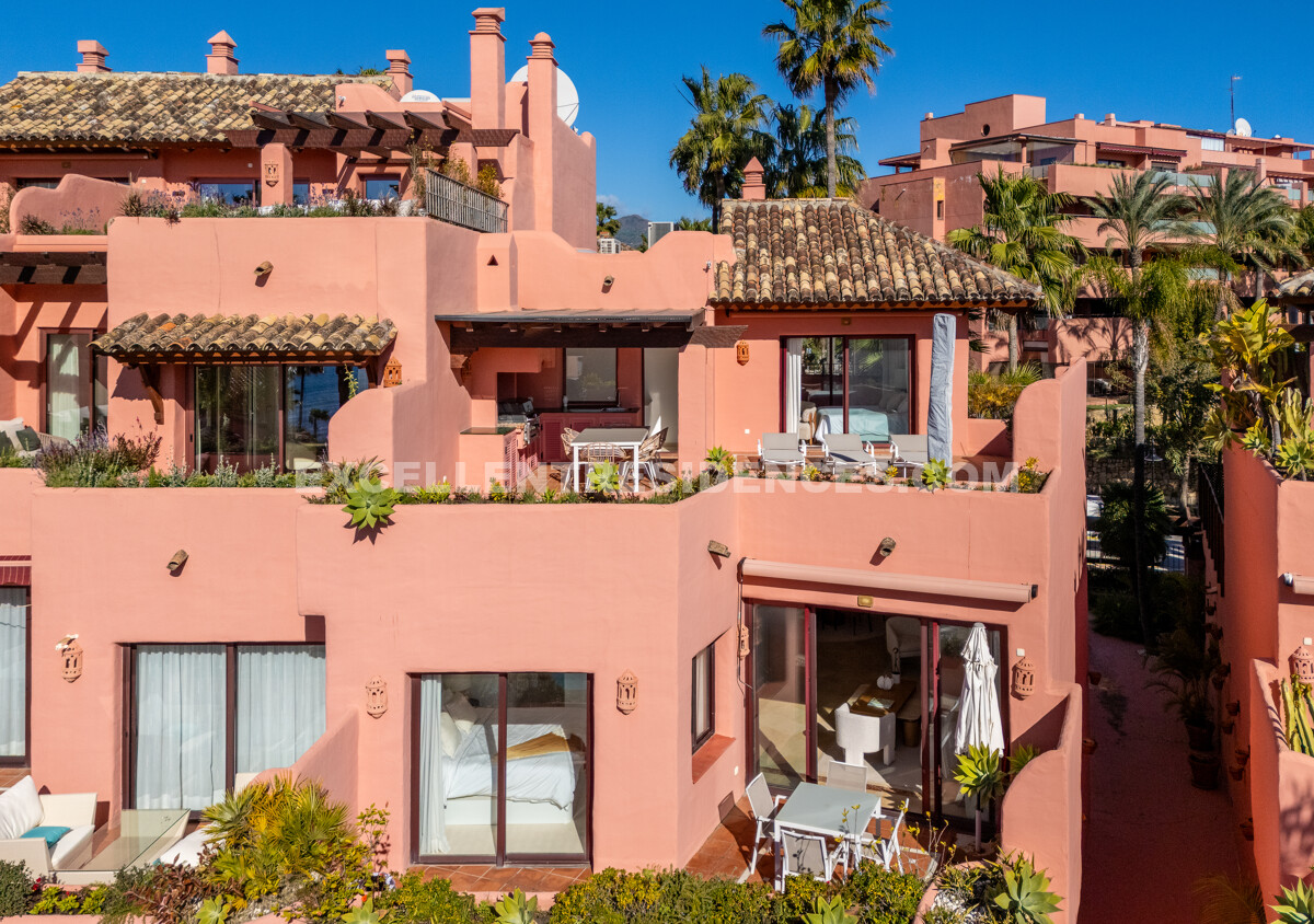 Set on the frontline of the beach in the prestigious Cabo Bermejo community, this exclusive duplex penthouse enjoys sweeping Mediterranean views that stretch to Gibraltar. Positioned in the heart of Estepona’s New Golden Mile, it offers an established coastal setting with direct access to the promenade and sand.