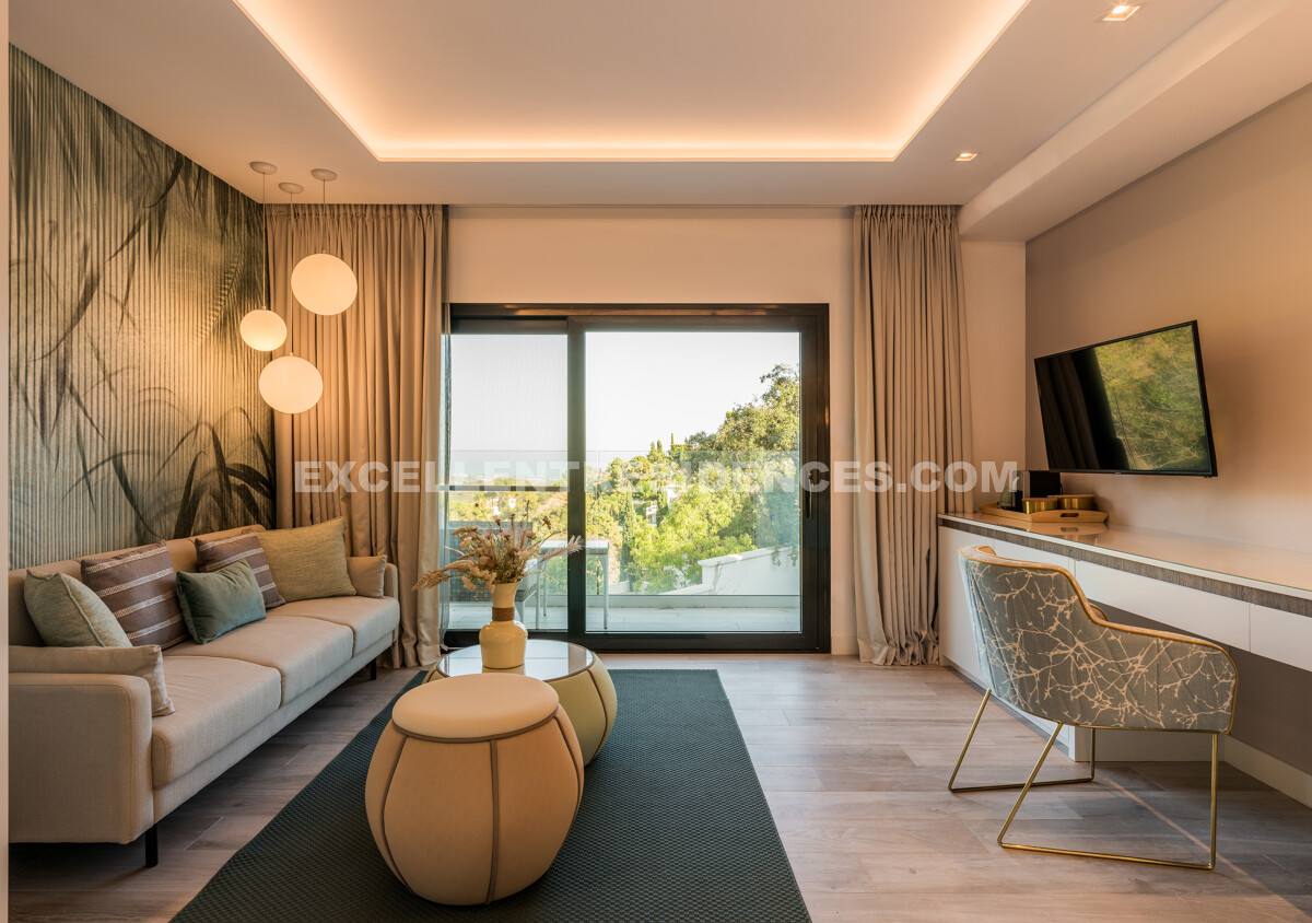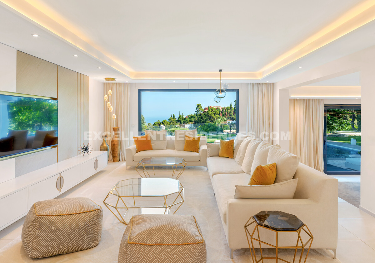 Set within the exclusive, 24-hour gated enclave of El Madroñal, this exquisitely refurbished contemporary villa combines privacy, refined styling, and sweeping views across the Mediterranean and surrounding mountains. Elevated above San Pedro along the Ronda Road, it offers a serene, country-club ambience minutes from coast and town.
