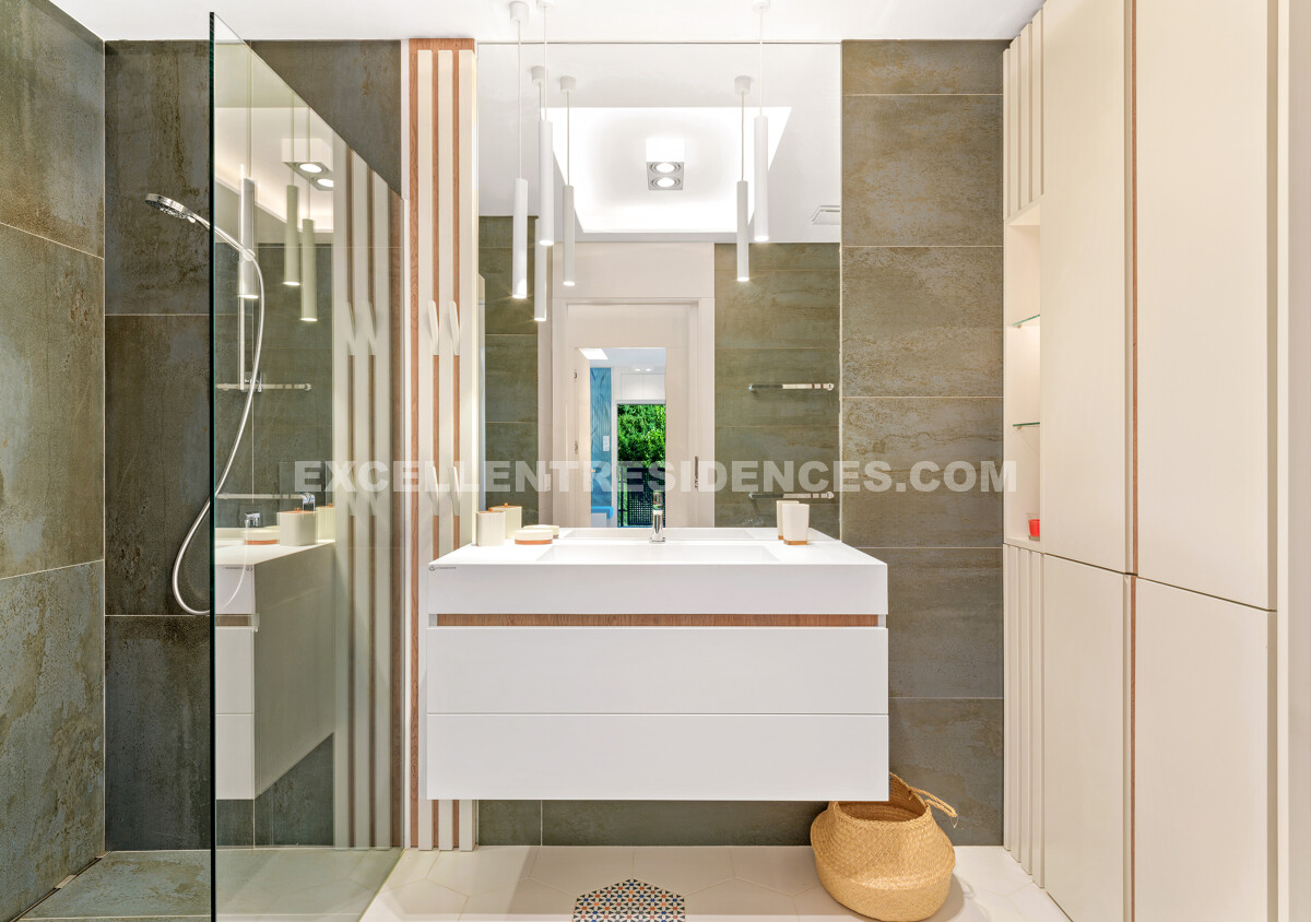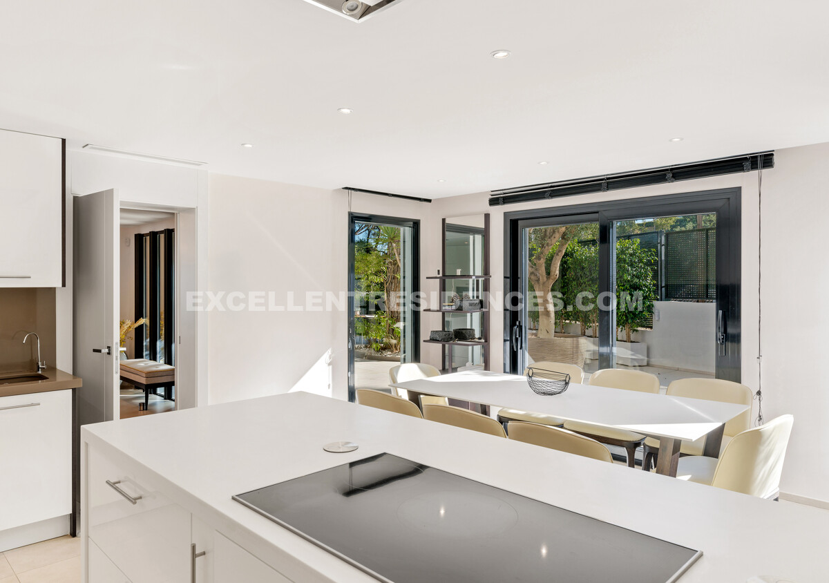 Recently modernized with impeccable taste, the residence unfolds with airy, light-filled interiors designed to frame the landscape. Calming, neutral finishes and expansive glazing foster an effortless indoor–outdoor rhythm, while mature Corsican pines embrace the plot, adding natural shade, scent, and year-round greenery.