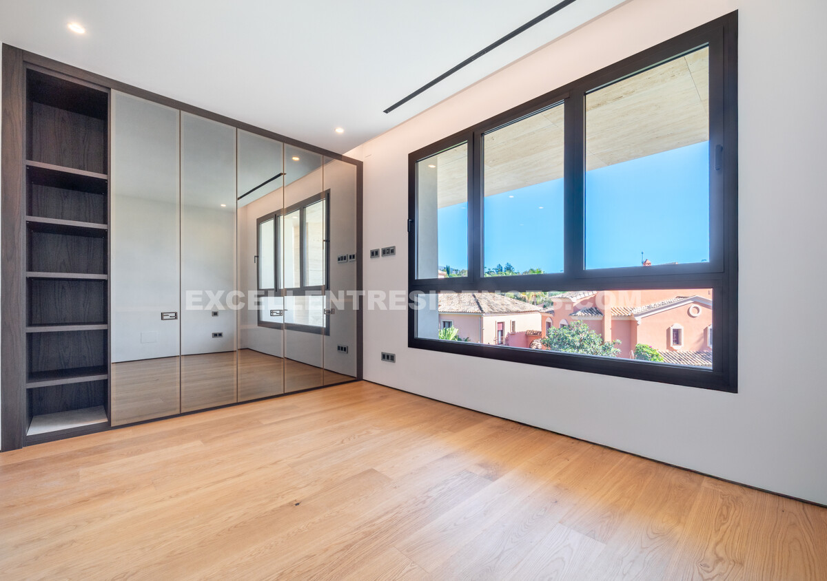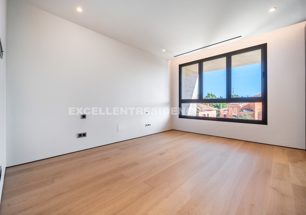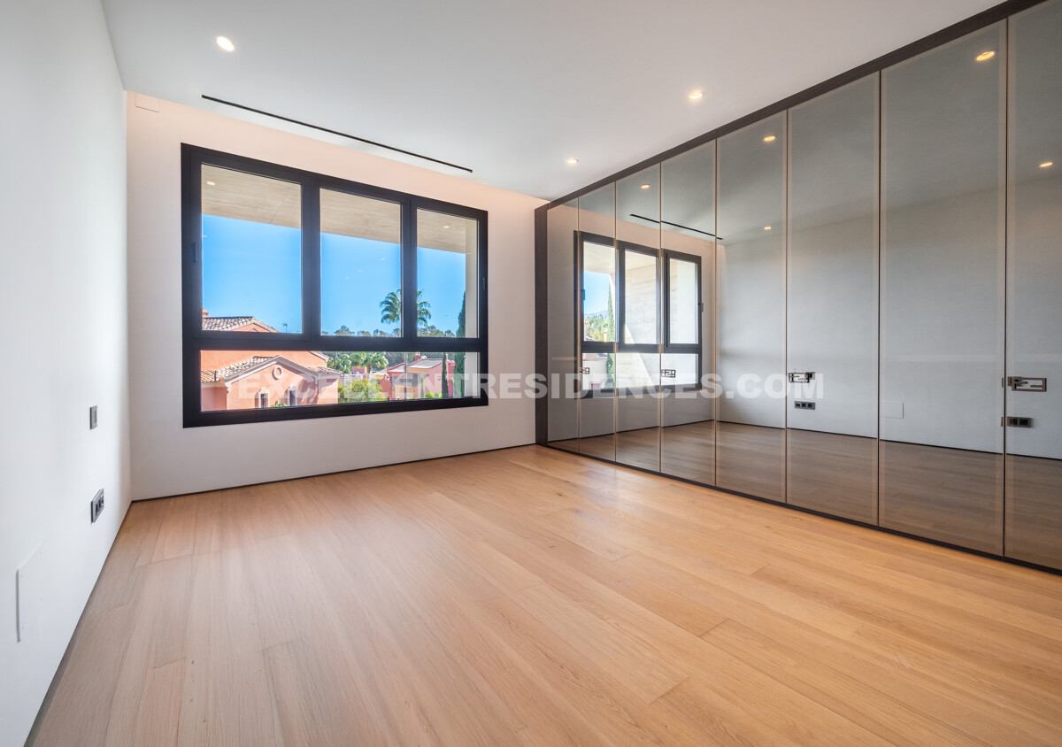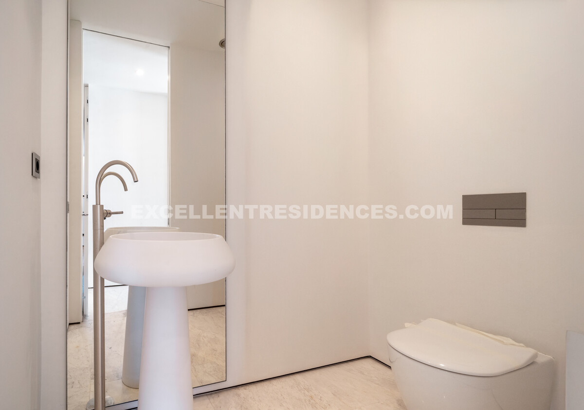 The upper level introduces a versatile additional room that spills onto an expansive private terrace with its own pool and solarium, plus an outdoor kitchen and covered dining area. Sunlit from morning to evening, it frames impressive sea views—perfect for relaxed days and sunset gatherings.