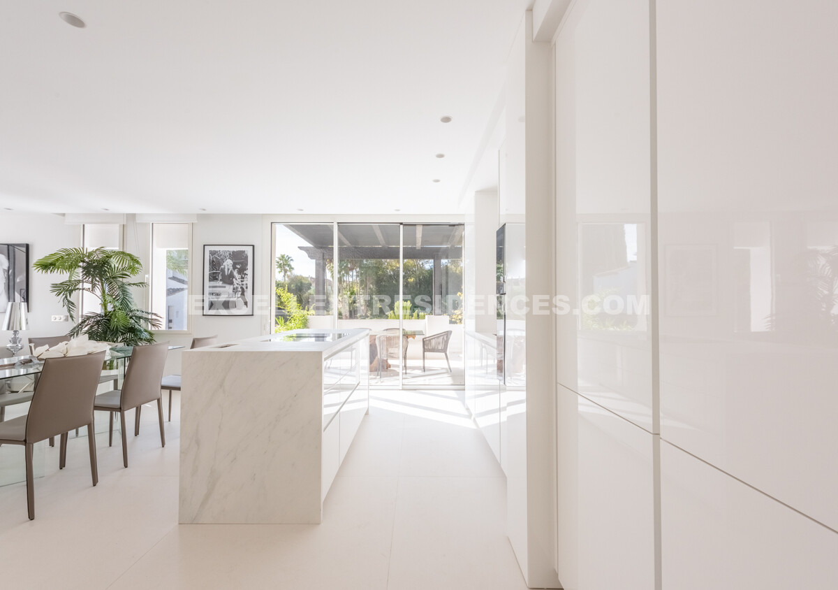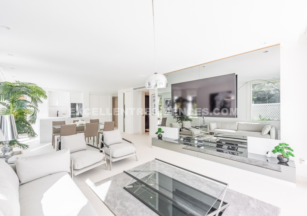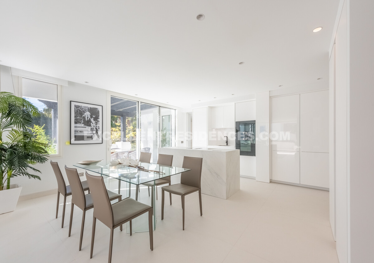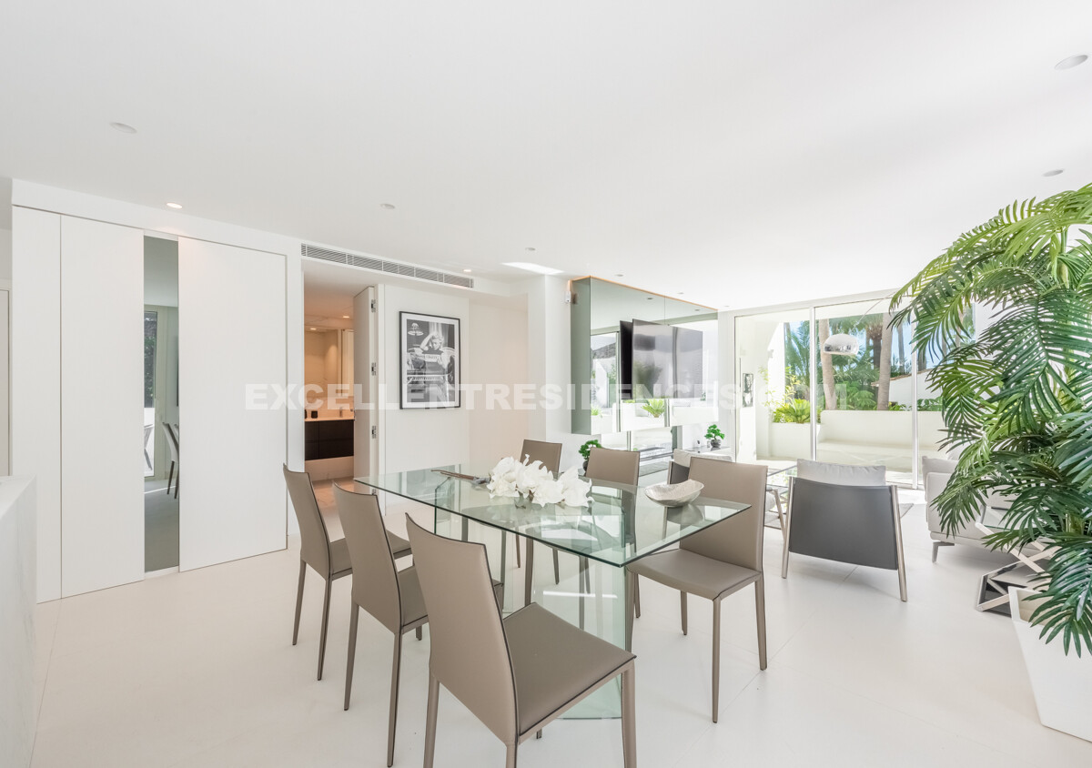 Fully refurbished in 2022, the home blends clean contemporary design with warm Mediterranean light. Floor-to-ceiling windows and dual orientation amplify brightness and airflow, while air-conditioning and underfloor heating ensure comfort year-round. A refined open-plan living and dining area integrates a state-of-the-art kitchen appointed with premium Gaggenau appliances.