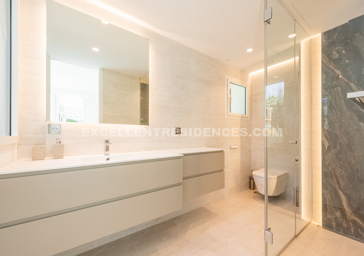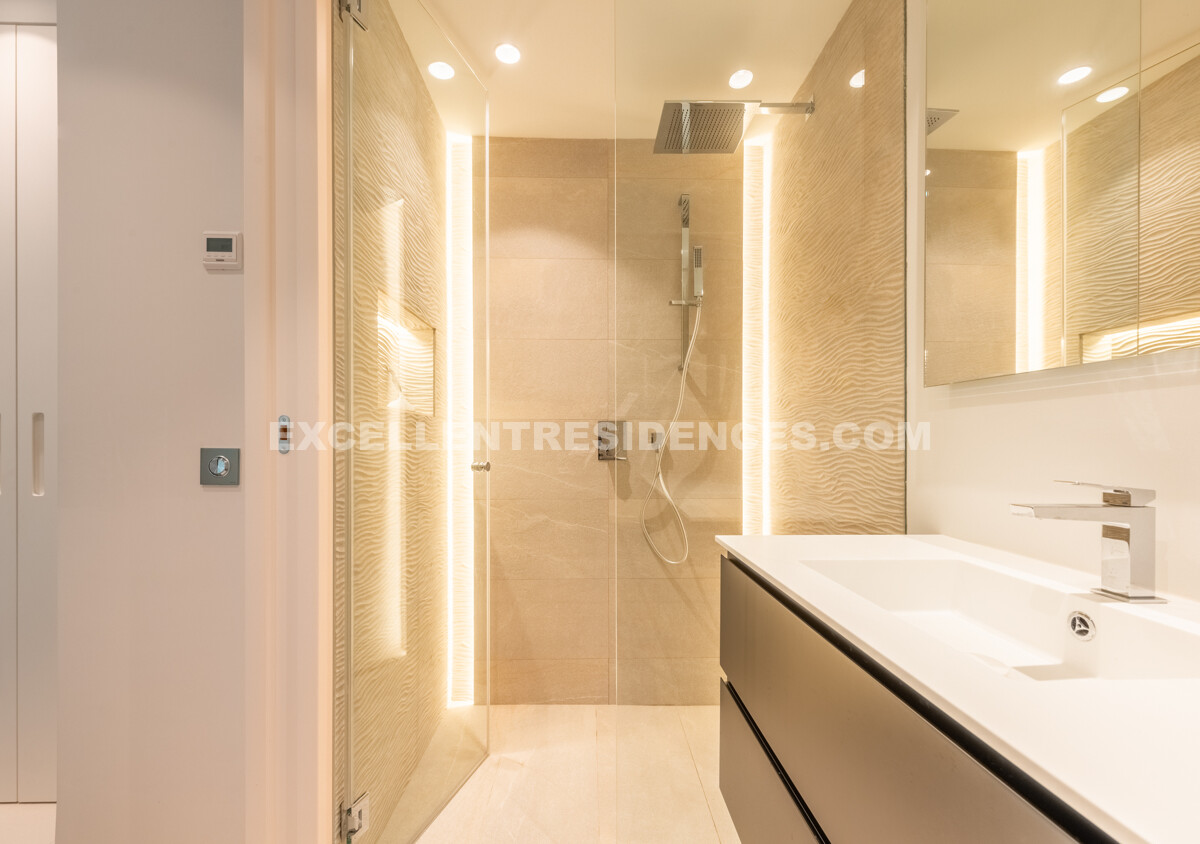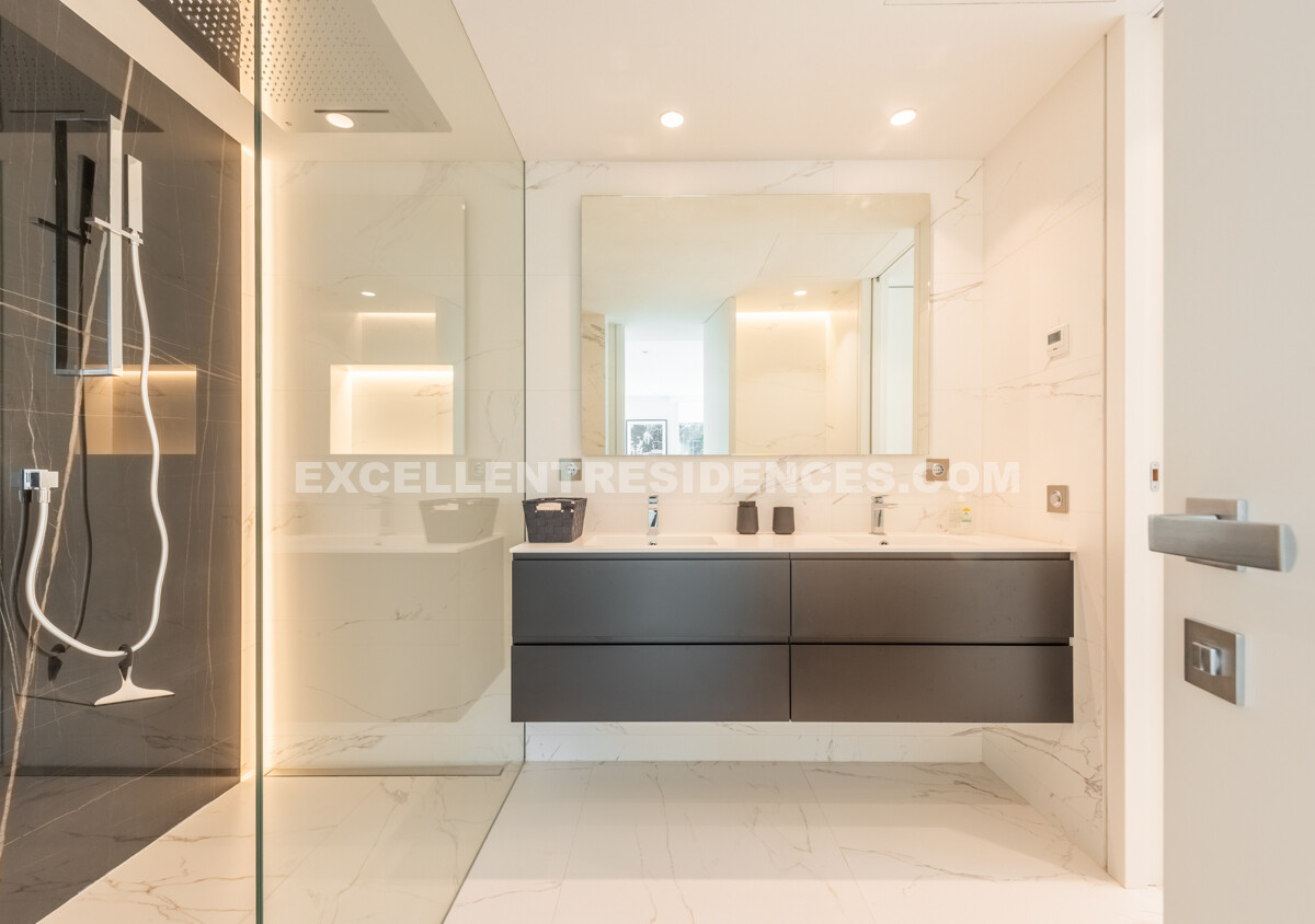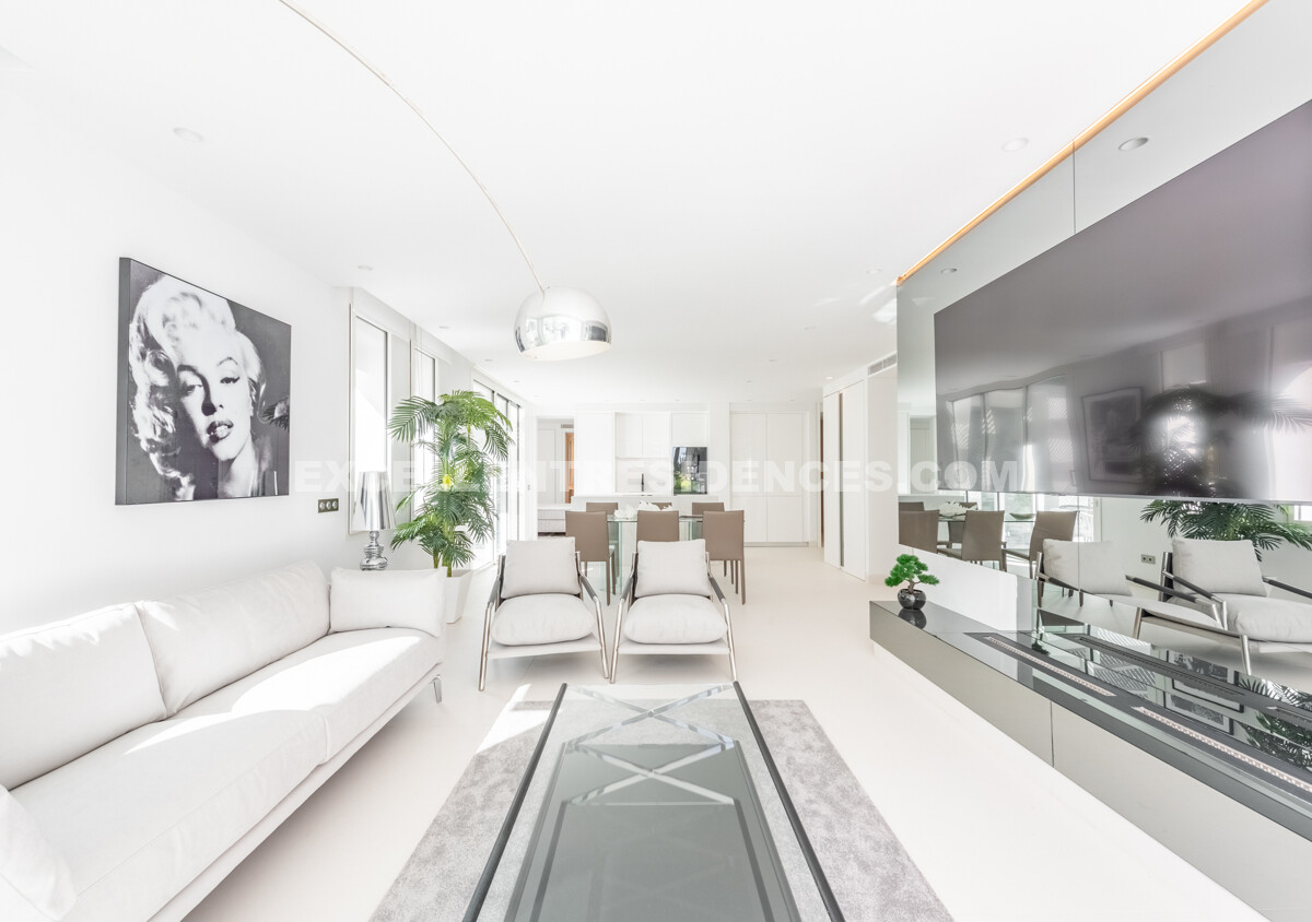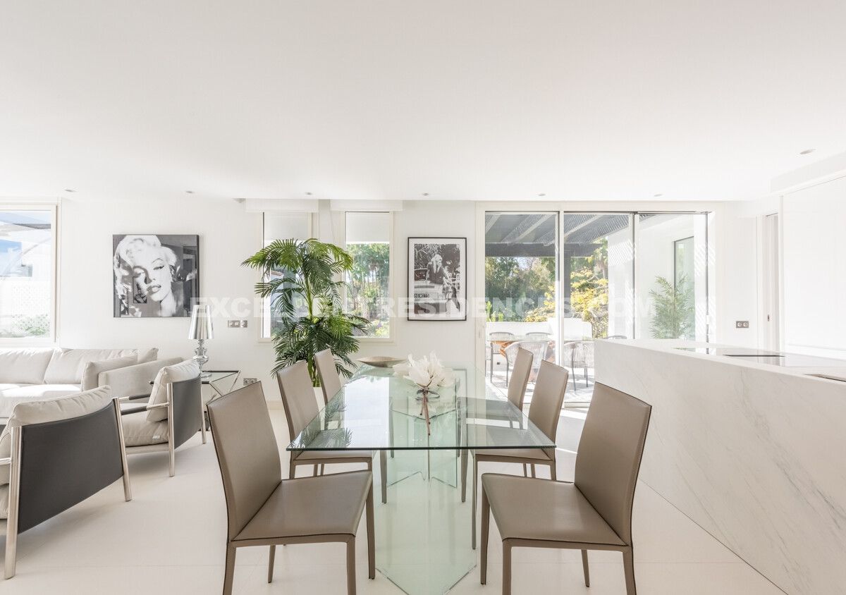Fully refurbished in 2022, the home blends clean contemporary design with warm Mediterranean light. Floor-to-ceiling windows and dual orientation amplify brightness and airflow, while air-conditioning and underfloor heating ensure comfort year-round. A refined open-plan living and dining area integrates a state-of-the-art kitchen appointed with premium Gaggenau appliances.