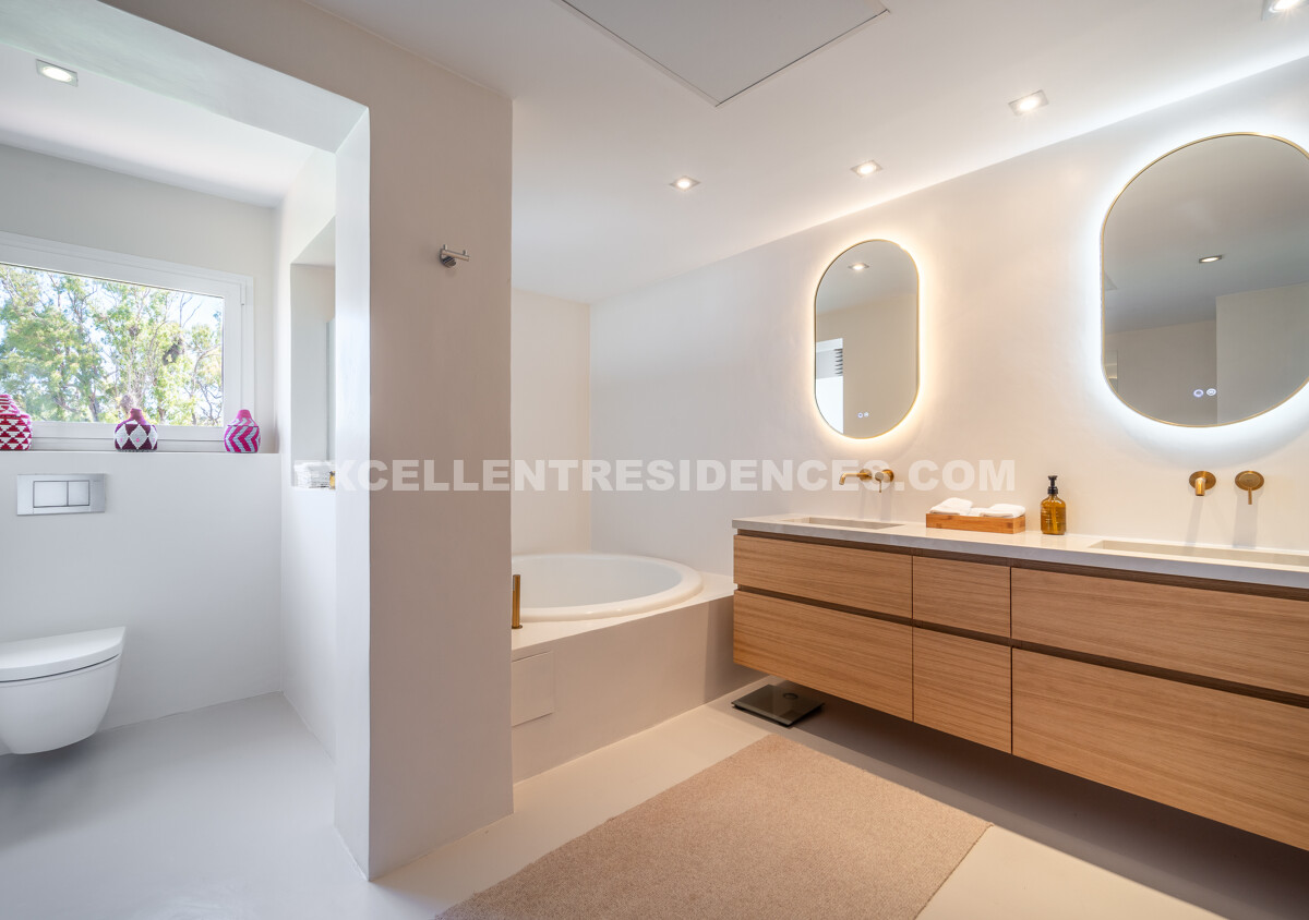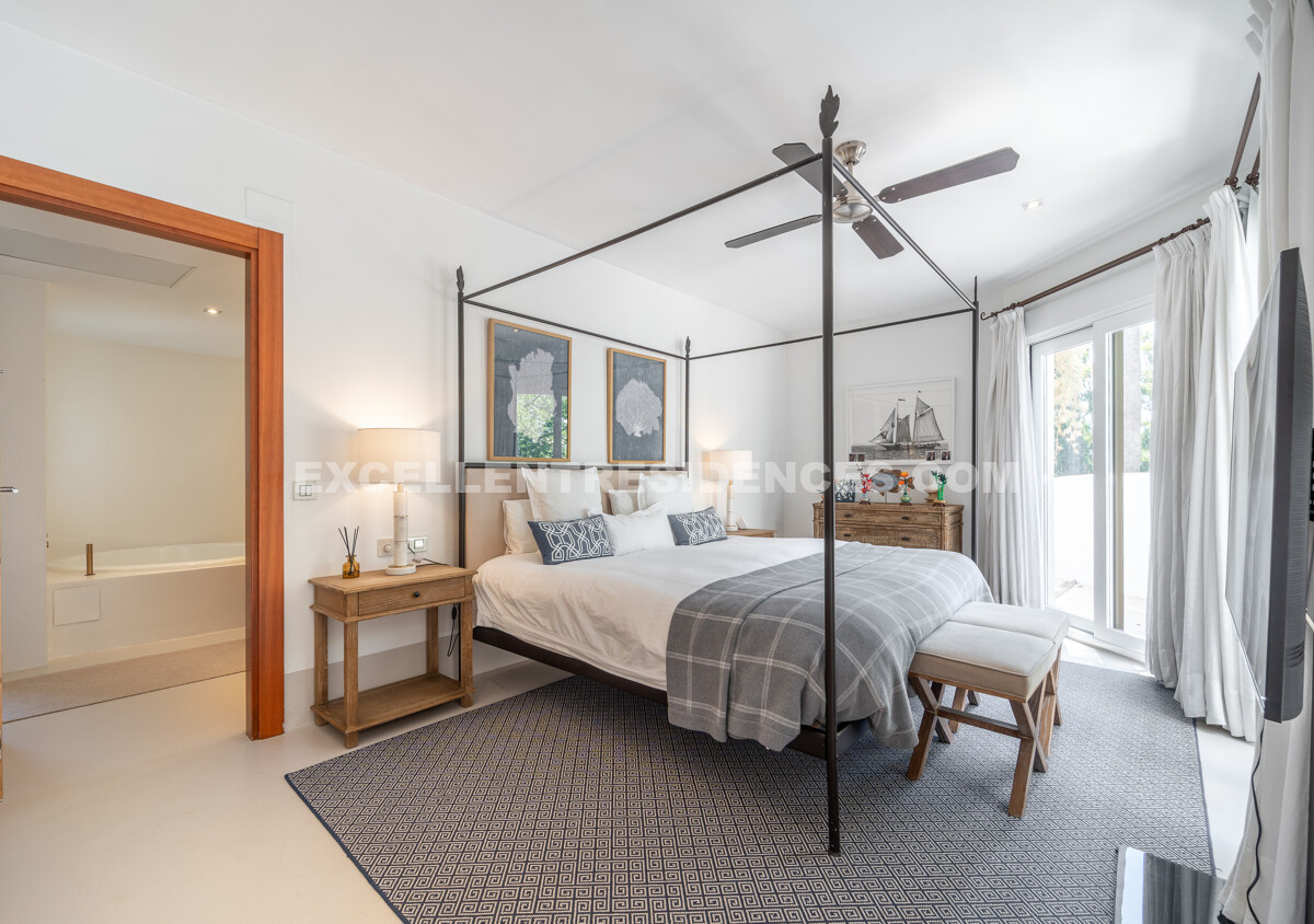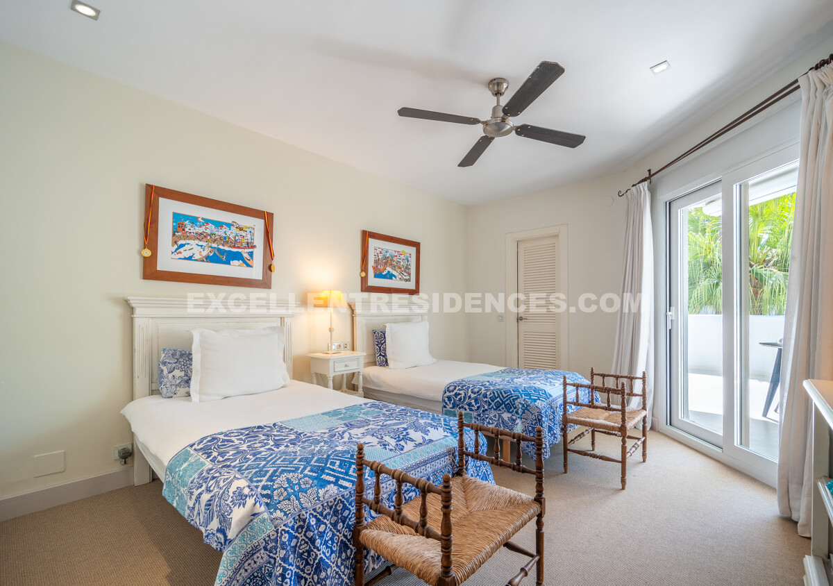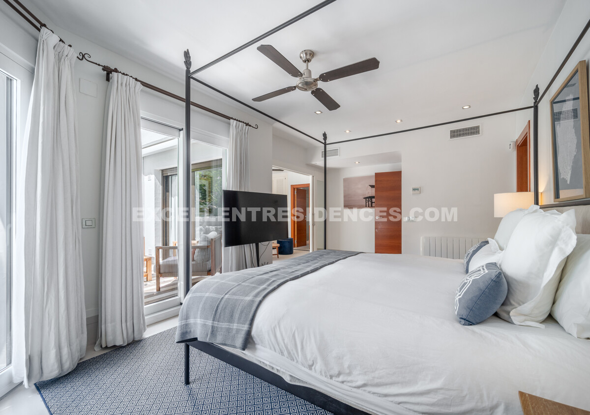 On the first floor, the master suite stands out for its generous proportions and elegant design. It includes a large bedroom, en-suite bathroom, a private sitting area, and its own terrace, offering a private retreat within the home.