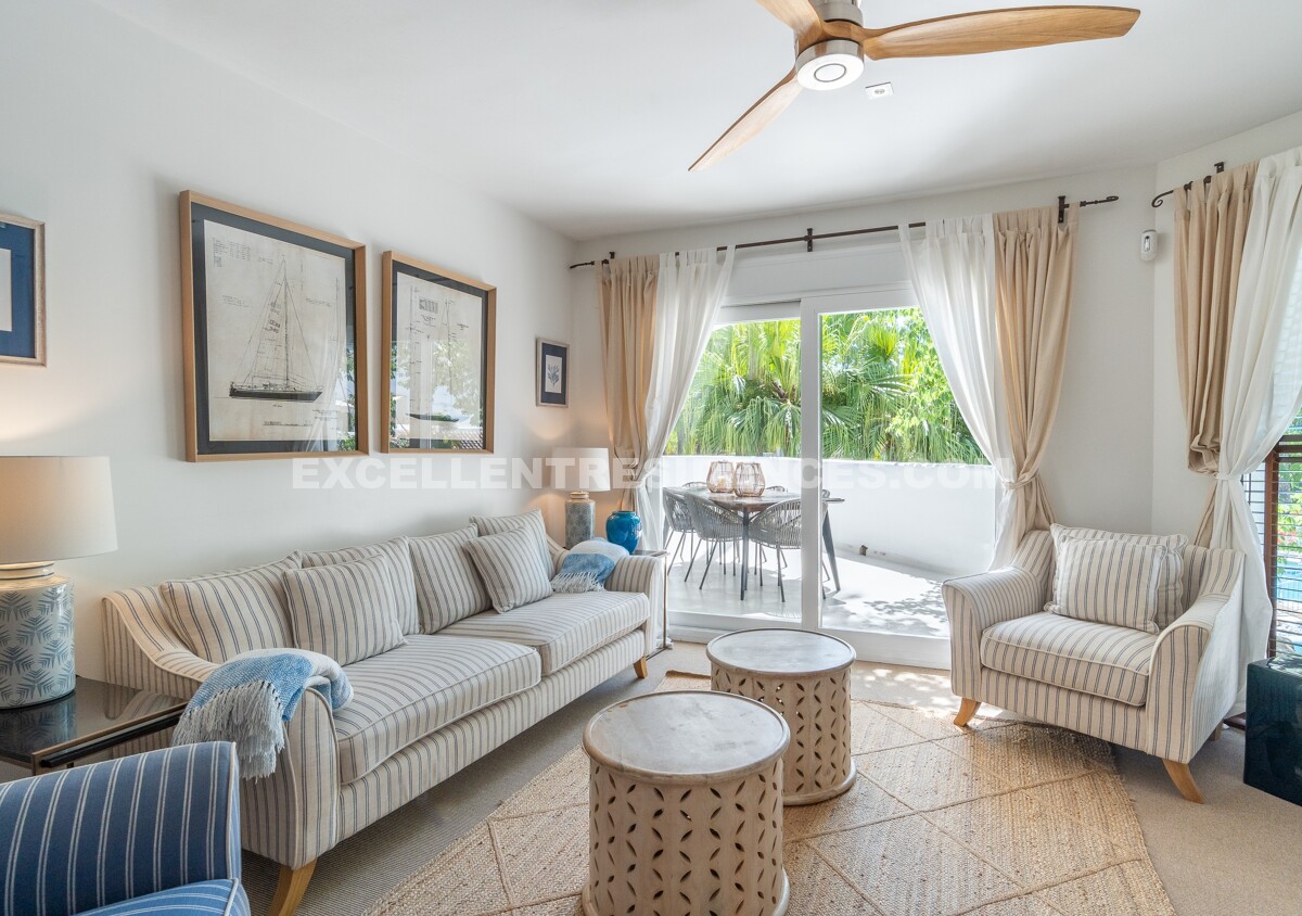 The penthouse enjoys open views of the sea and communal areas, combining natural beauty with resort-style living. Features such as air conditioning, electric blinds, and awnings ensure comfort in every season.