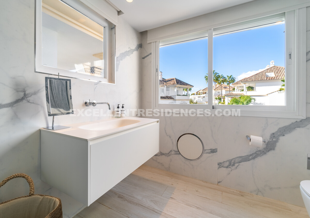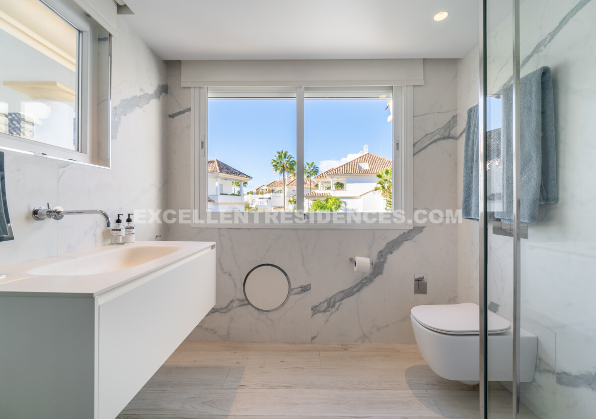 Residents enjoy 24-hour security, multiple outdoor pools in tropical gardens, an indoor heated pool, gym, sauna, steam room, massage room, squash court, children’s area, and a residents’ bar-restaurant. Modern comforts include AirZone climate control, home automation, underfloor heating in bathrooms, electric blinds, two large garage spaces, and a storage room. Five minutes to the beach, Puerto Banús, and central Marbella, this is a standout address on the Golden Mile.