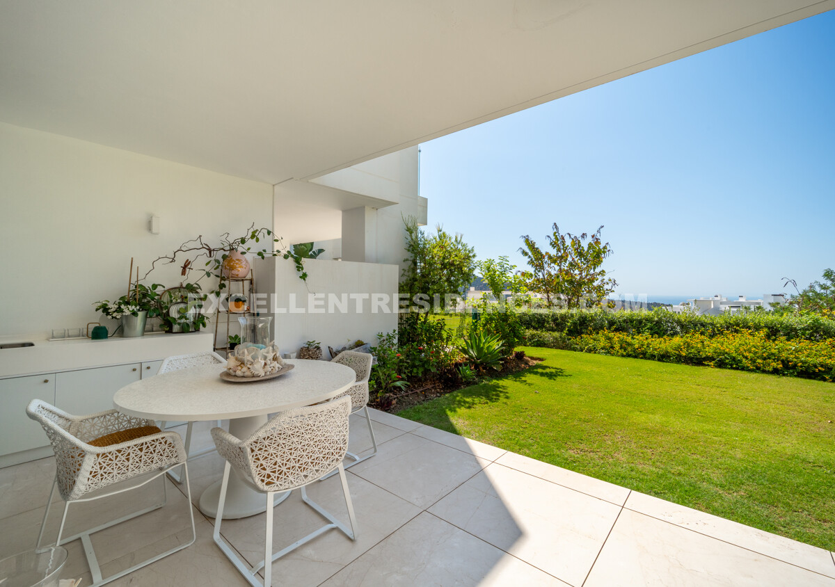 This corner ground floor apartment is located in Los Almendros, one of the most private buildings within the exclusive residential complex of Palo Alto. Set in a serene natural environment just 10 minutes from Marbella, the property offers an exceptional combination of luxury, comfort, and discretion.