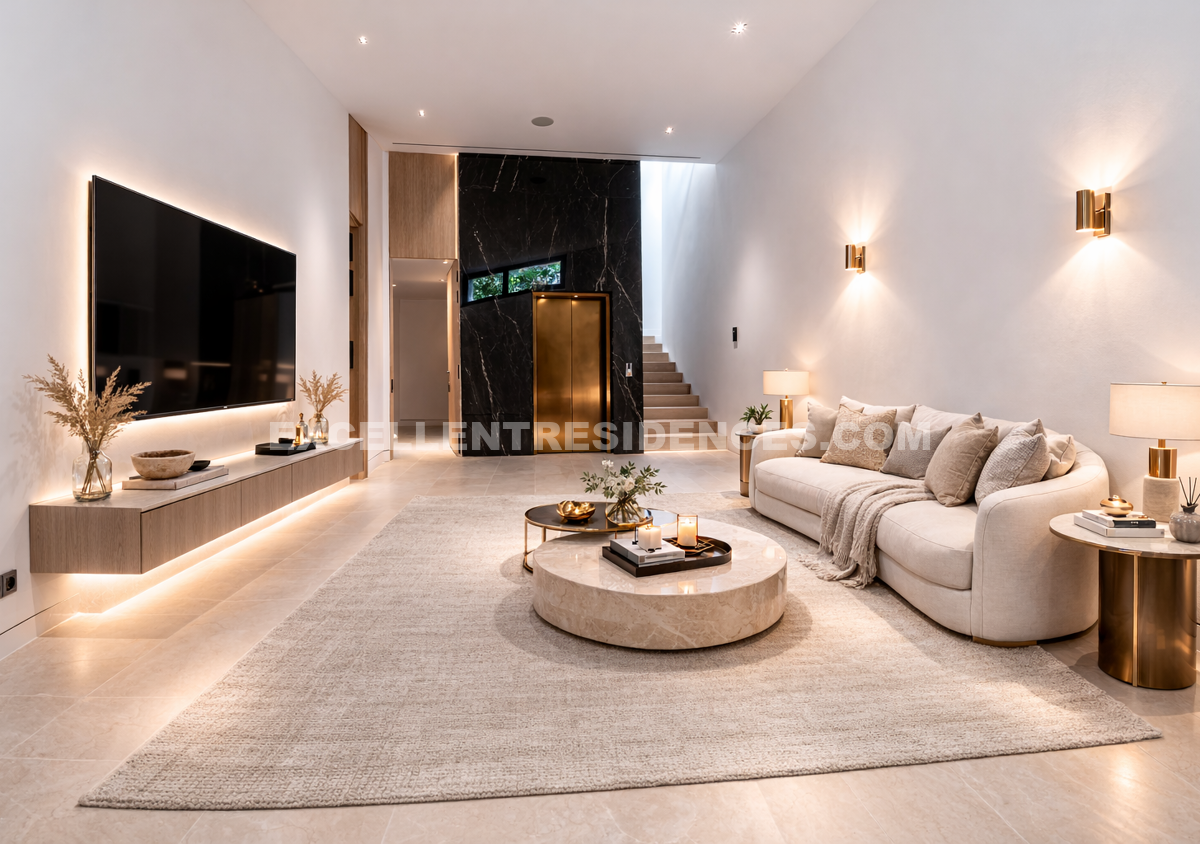 Bright Living Spaces and Designer Kitchen