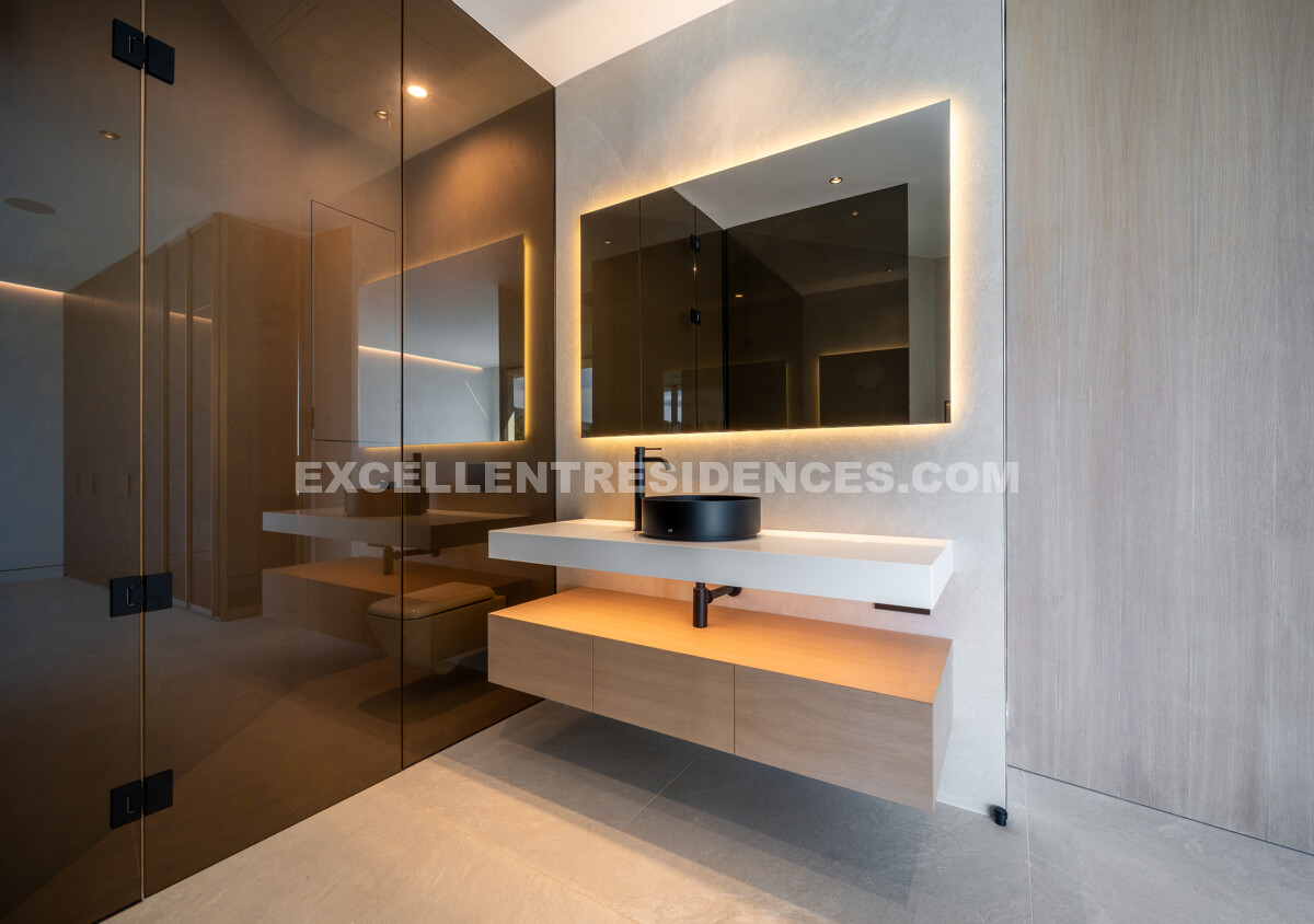 As a corner unit, the villa includes a large solarium with a heated private pool—perfect for entertaining or enjoying panoramic views of the Mediterranean.
