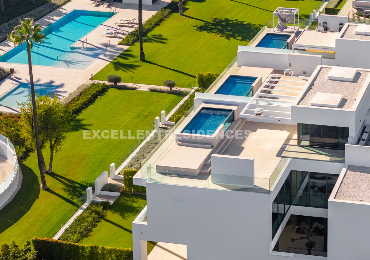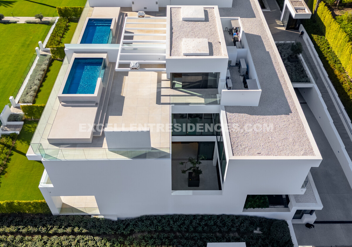 Set within the prestigious Vilas 6 enclave in Atalaya Río Verde, Nueva Andalucía, this modern semi-detached villa pairs striking architecture with premium finishes in one of Marbella’s most coveted addresses—minutes from top golf courses, golden beaches, acclaimed dining, Puerto Banús, and Aloha College.