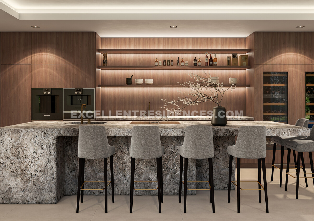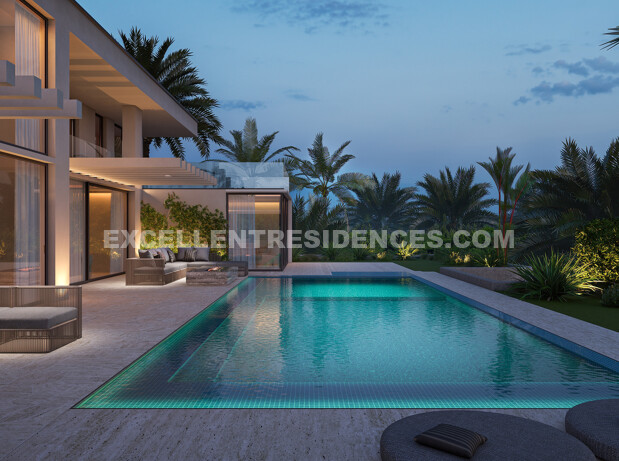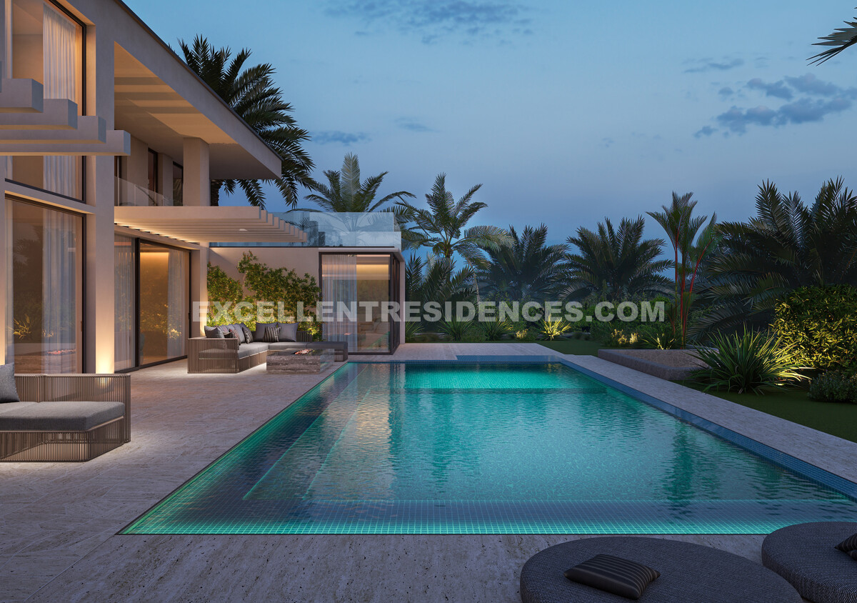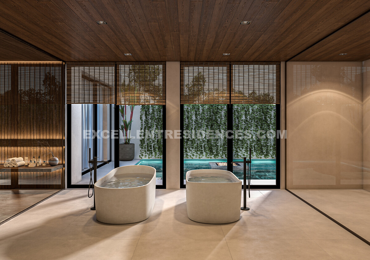 The upper floor includes beautifully designed en-suite bedrooms with private terraces, while the lower level is dedicated to leisure and wellbeing. Here, the property includes additional bedroom suites together with a cinema room, wine cellar, games room, gym, laundry area and a private spa featuring a sauna, hammam and ice bath. A five-car garage, carport, lift and dual access points complete this impressive residence. Estimated completion is between March and May 2027, with phased payment terms available.