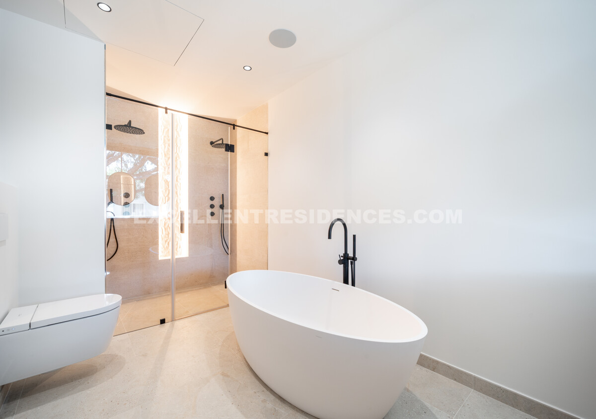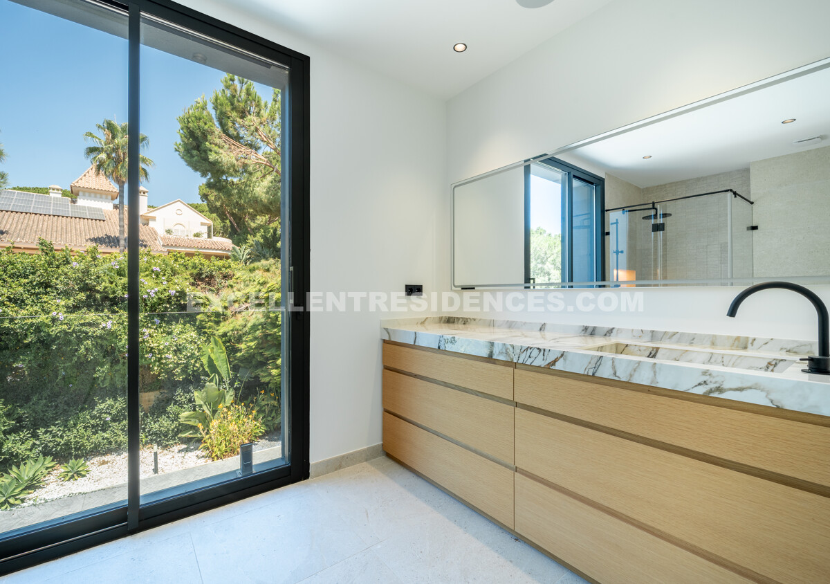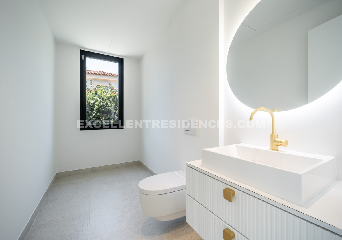Situated in the prestigious gated community of Hacienda Las Chapas, Villa Althea is a newly built residence that blends cutting-edge design with maximum comfort. Set on a generous plot of 1,344 m², the villa boasts 450 m² of built area across three levels, offering privacy, style and functionality in one of East Marbella’s most desirable areas.