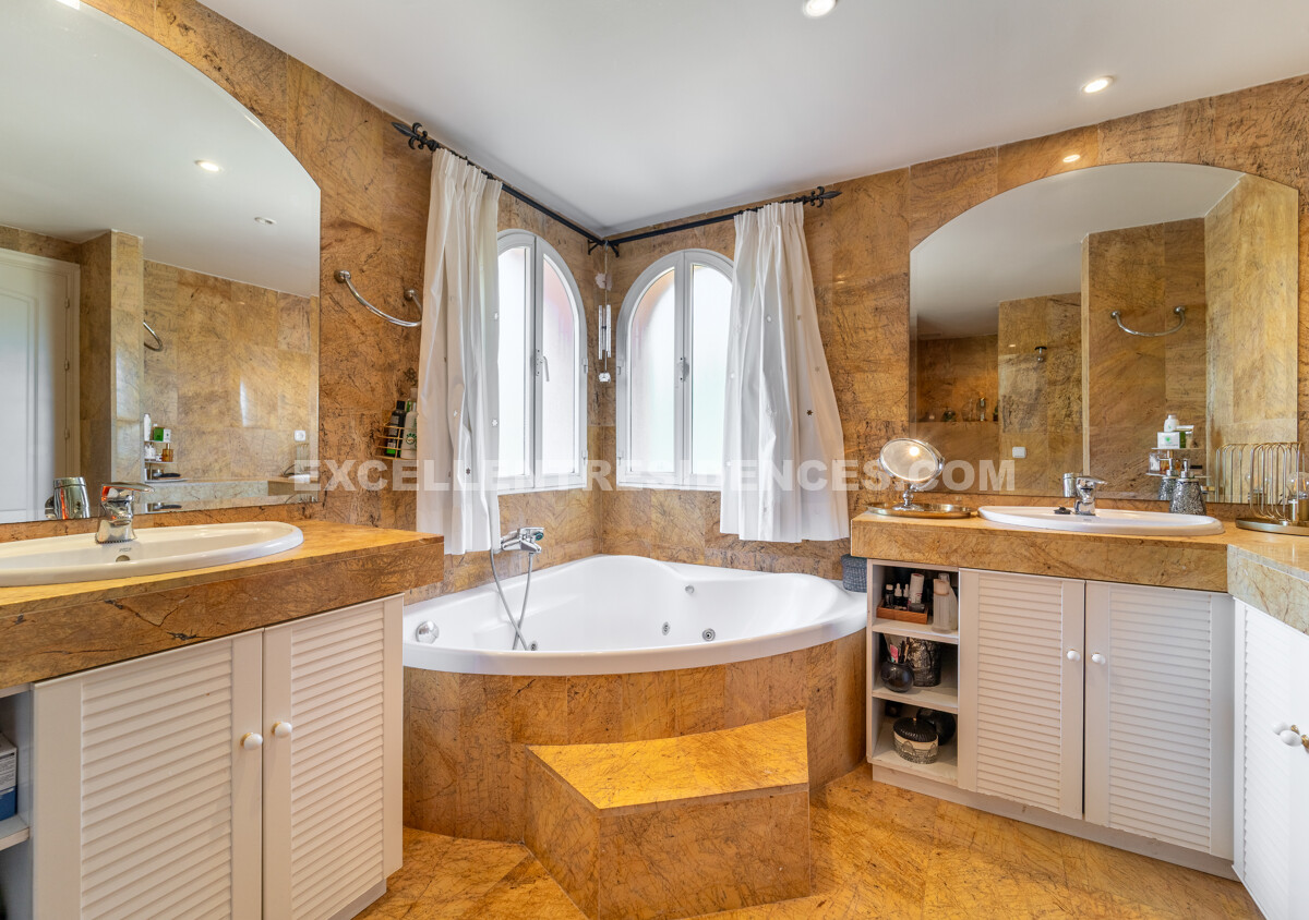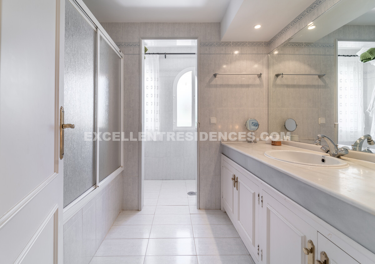 Originally conceived as a two-villa project, only one home was built. An approved project and building licence exist for a second villa. The land is subdivided into three parcels—each with privacy and sea views—within UE4 zoning that permits 20% buildability above ground (approx. 713 m² plus basement). Dual access from two streets adds flexibility. Whether kept as a substantial family residence, expanded with an additional villa, or reimagined as three contemporary homes, this address offers an exceptional lifestyle and investment opportunity.
