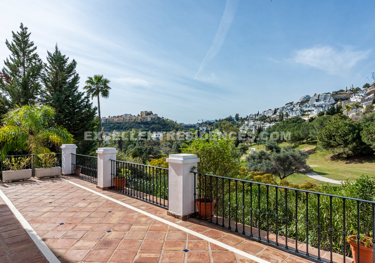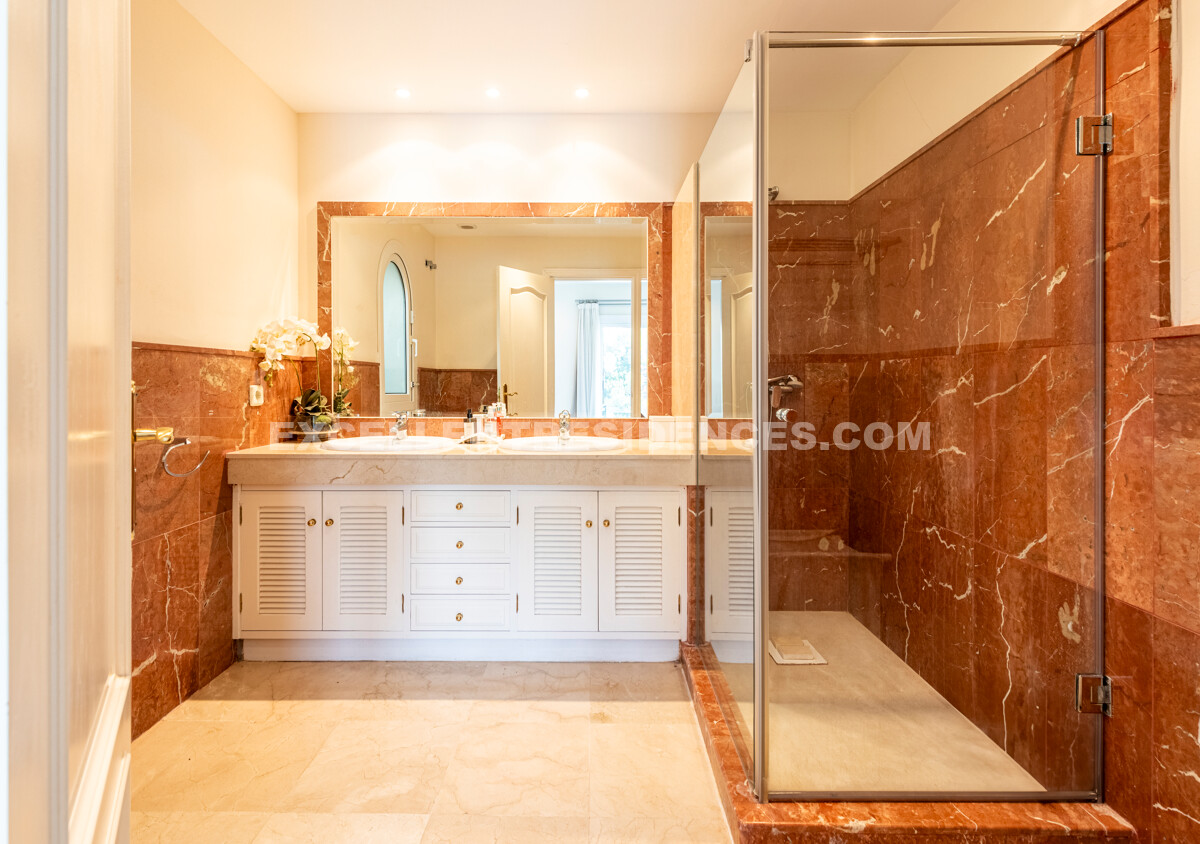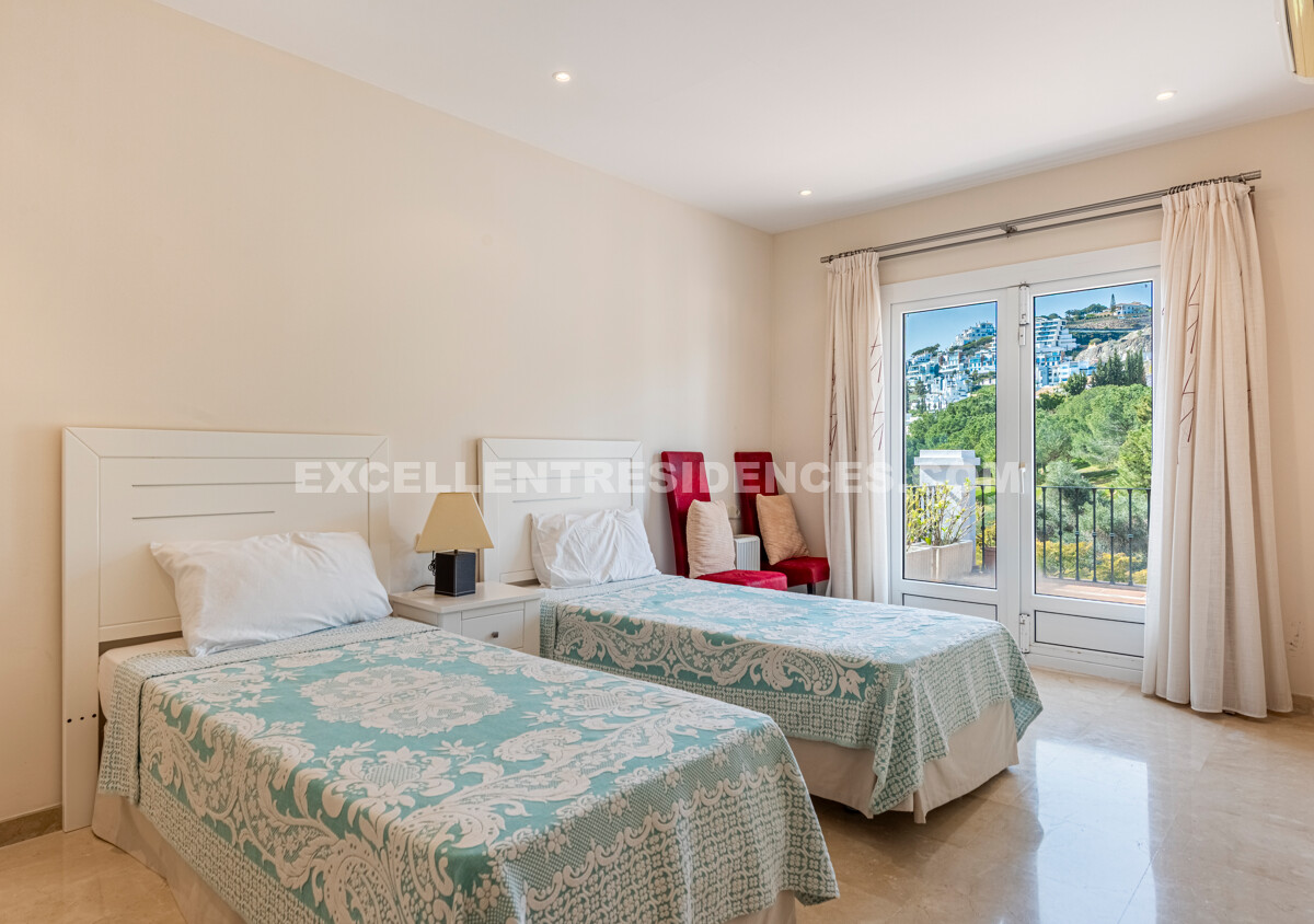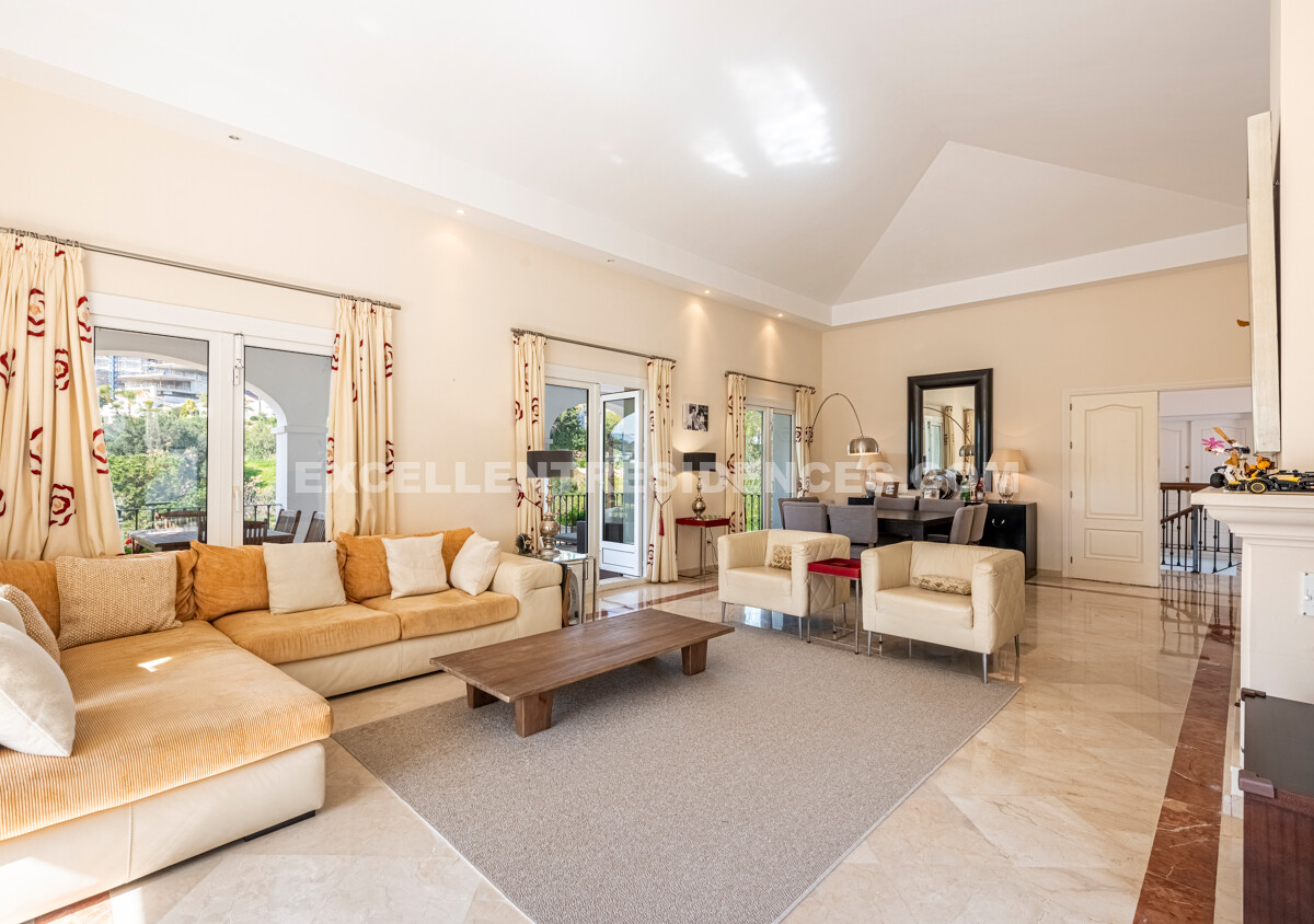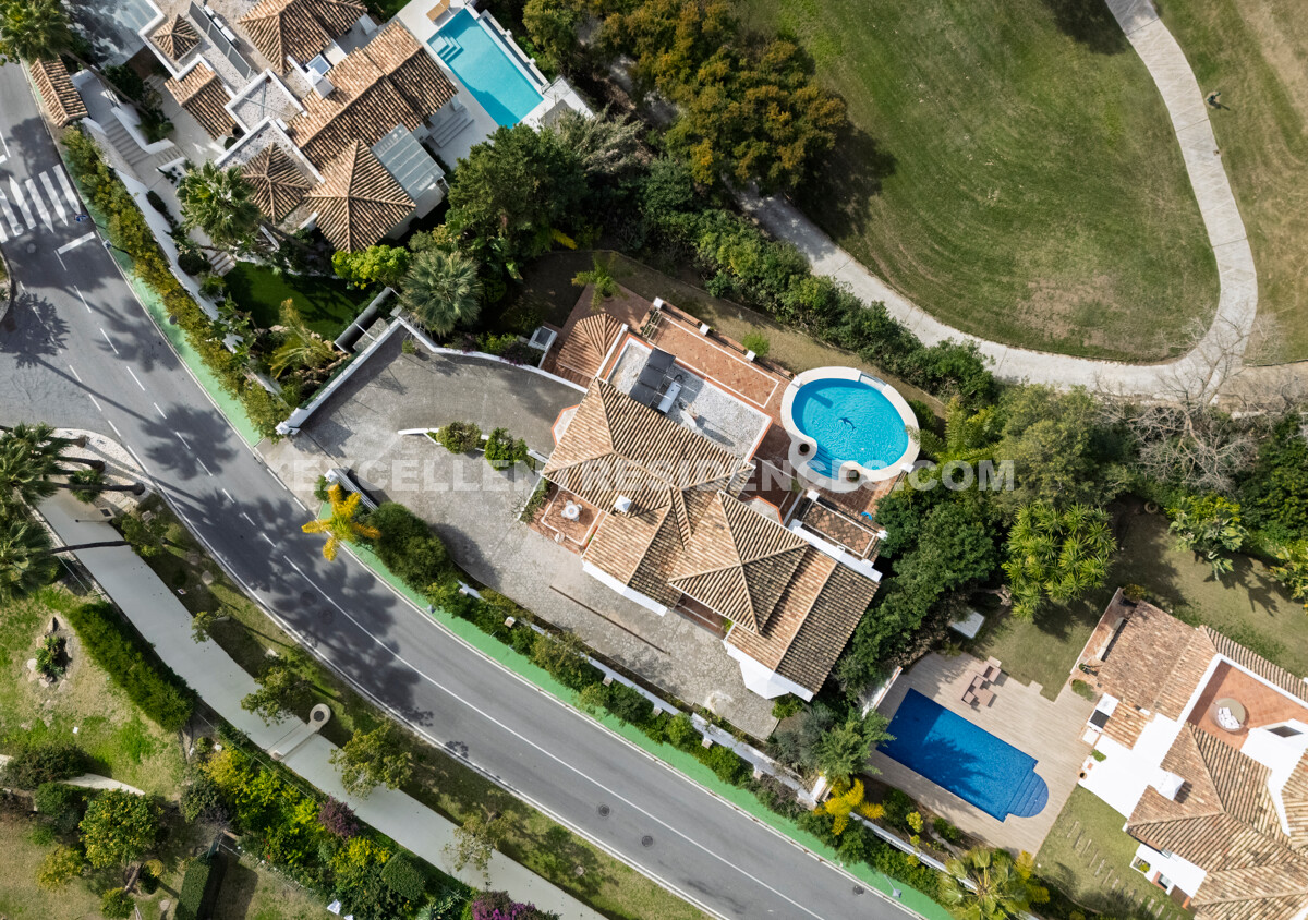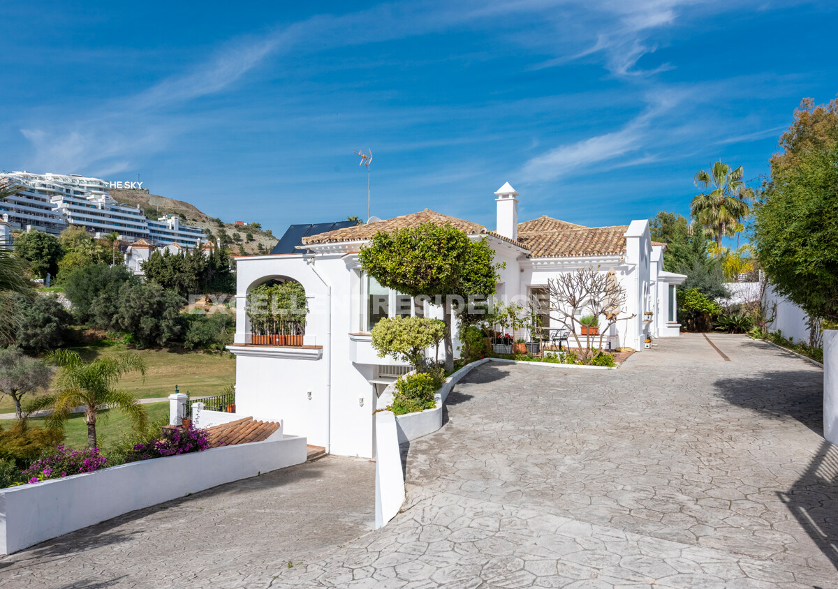 The covered rear porch runs the length of the villa, creating a superb setting for dining and relaxation with elevated views. At garden level, a self-contained guest apartment—currently a games and entertainment area—includes a fully fitted kitchen and a large bathroom. A jacuzzi and a petite private garden sit just outside, and there is scope to enlarge exterior areas by raising part of the plot to craft additional landscaped or leisure zones. An exciting canvas to modernize into a refined, contemporary retreat.