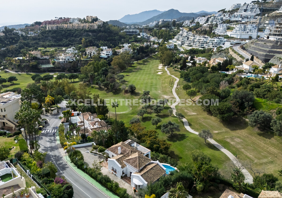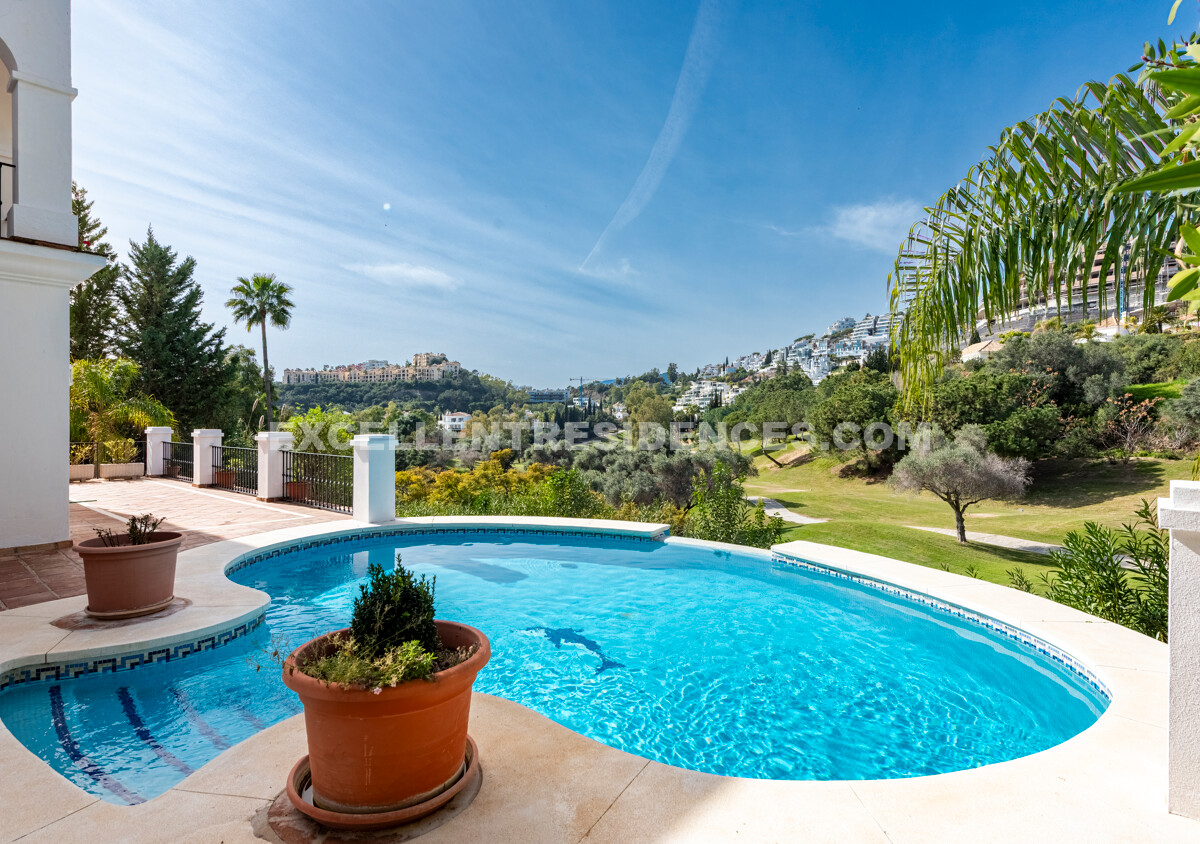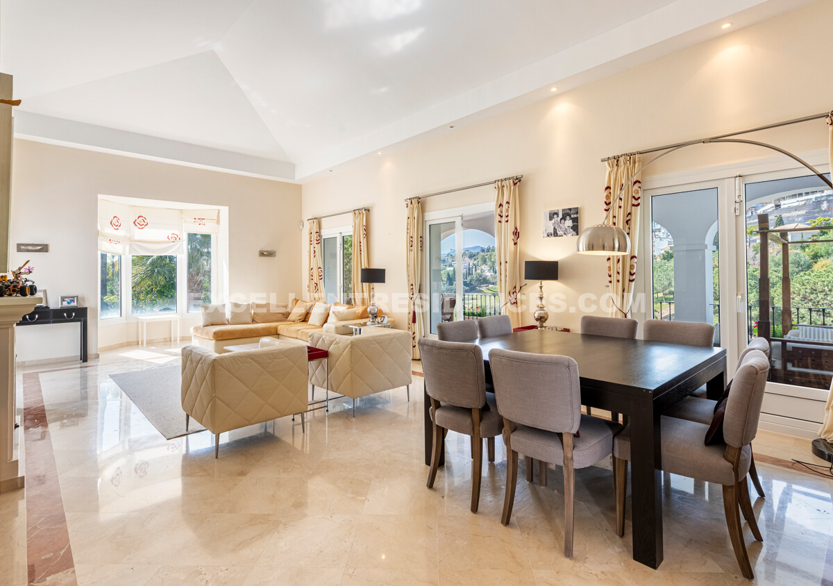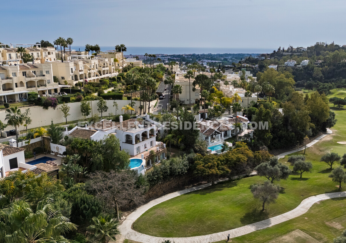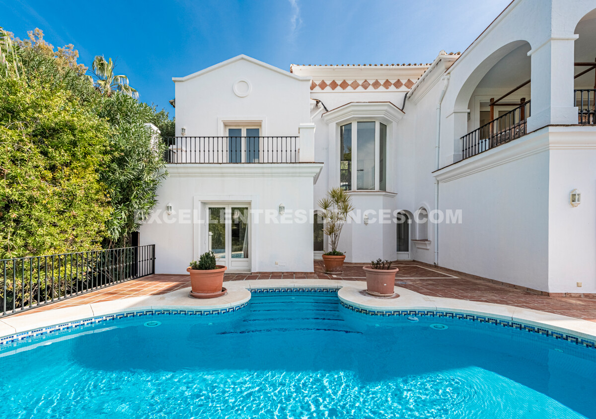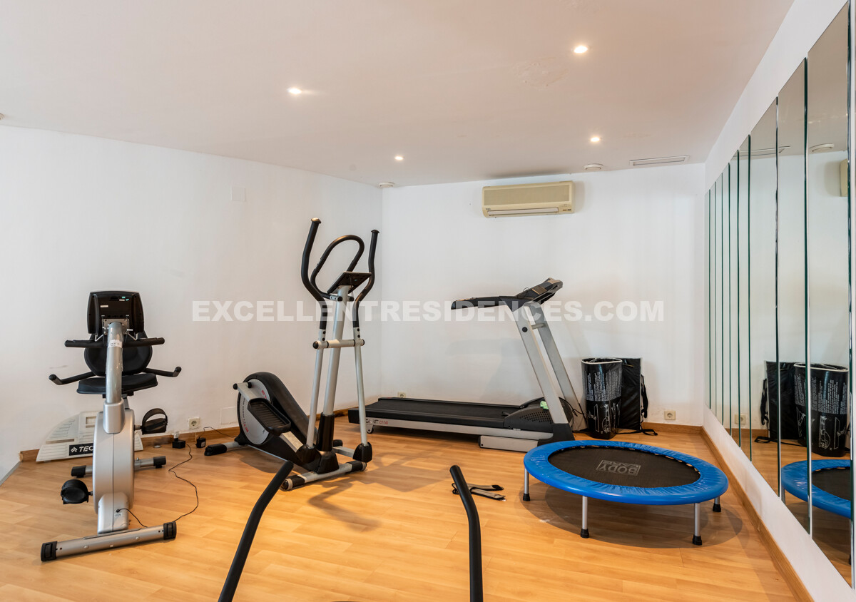 The covered rear porch runs the length of the villa, creating a superb setting for dining and relaxation with elevated views. At garden level, a self-contained guest apartment—currently a games and entertainment area—includes a fully fitted kitchen and a large bathroom. A jacuzzi and a petite private garden sit just outside, and there is scope to enlarge exterior areas by raising part of the plot to craft additional landscaped or leisure zones. An exciting canvas to modernize into a refined, contemporary retreat.